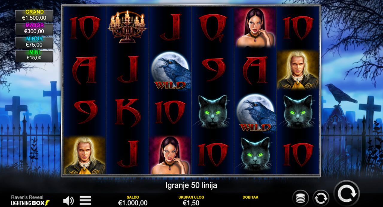 RAVEN’S REVEAL se igra na standardnoj mreži slot rola. Nakon što odabereš svoj ulog (od 0,25 € do 60,00 €), pokreneš spin i pratiš ishod simbola. Cilj je spojiti dobitne simbole na isplatnim linijama da bi ostvario dobitak. Igra nema bonus rundi, besplatnih vrtnji ni jackpot — sve se svodi na klasičan slot gameplay i priliku da svaki spin donese iznenađenje.