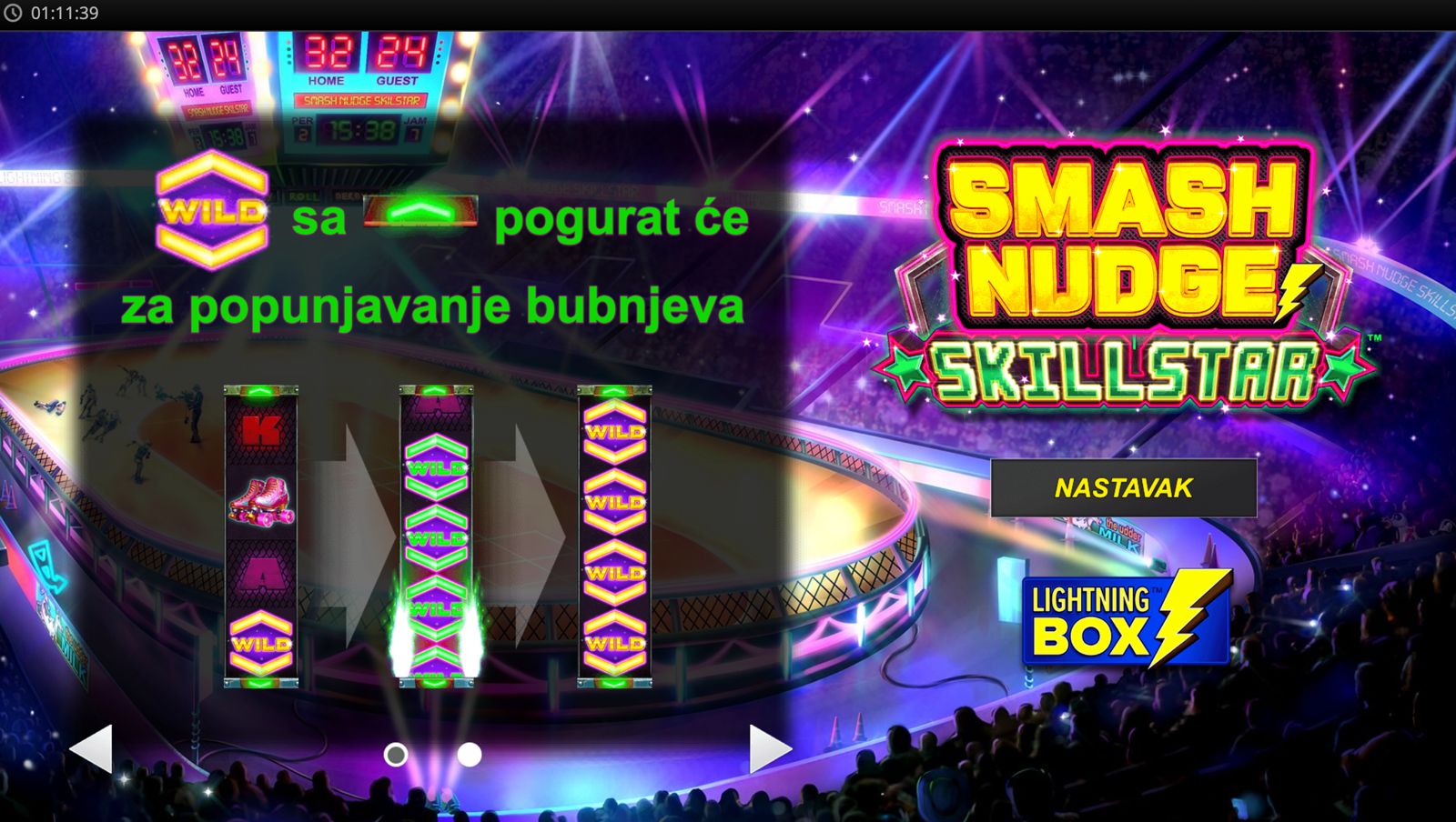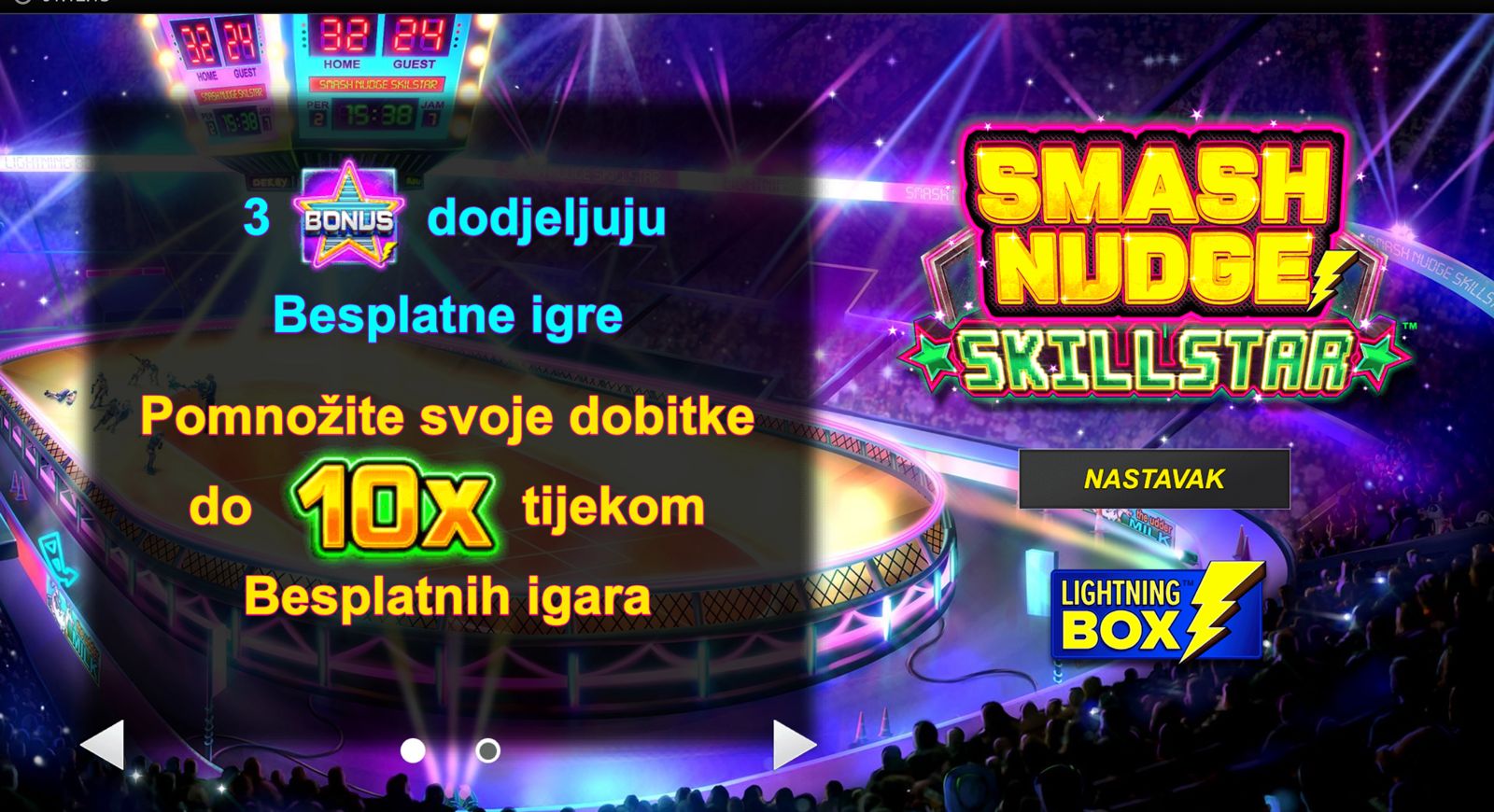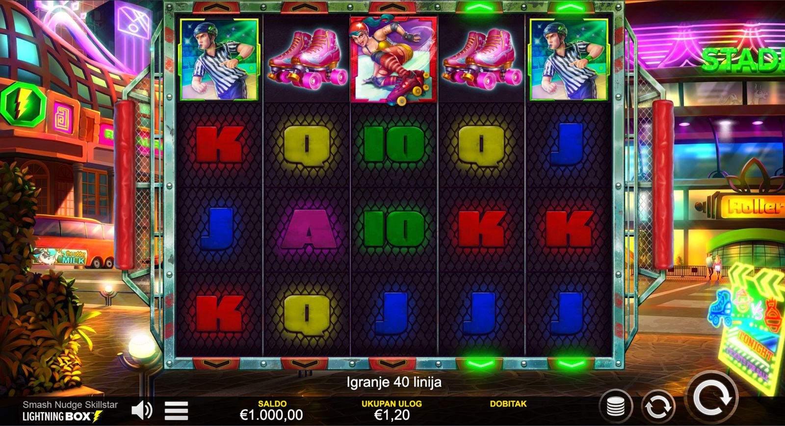 Dobrodošli u svijet adrenalina i kombinacije sreće i vještine! SMASH NUDGE SKILLSTAR dolazi od providera Light & Wonder (LnW) i nudi poseban slot doživljaj u kojem uz klasične spinove dobivaš i dodatnu kontrolu kroz nudge-mehaniku — savršeno za igrače koji vole aktivno sudjelovanje. Minimalni ulog iznosi 0,40 €, dok maksimalni iznosi 40,00 €, što igru čini pristupačnom i casual igračima i onima koji žele srednji rizik. Igra nema jackpot, ali kombinacija spin-ravnoteže i skill elementa može donijeti uzbudljive dobitke. Ako želiš slot koji nije samo nasumičan — SMASH NUDGE SKILLSTAR je prava opcija!