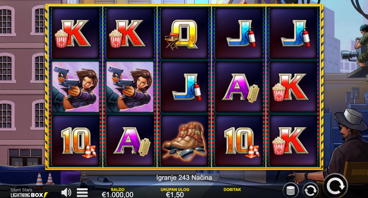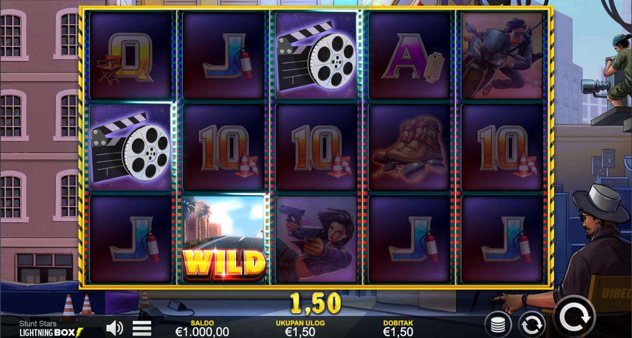 STUNT STARS se igra na standardnoj slot mreži: odaberi ulog između 0,30 € i 90,00 €, potom pokreni spin i gledaj simbole. Cilj je složiti dobitne kombinacije simbola na isplatnim linijama da bi ostvario dobitak. Igra ne sadrži bonus runde, besplatne vrtnje ni jackpot — sve ovisi o rasporedu simbola i tvom ulogu.