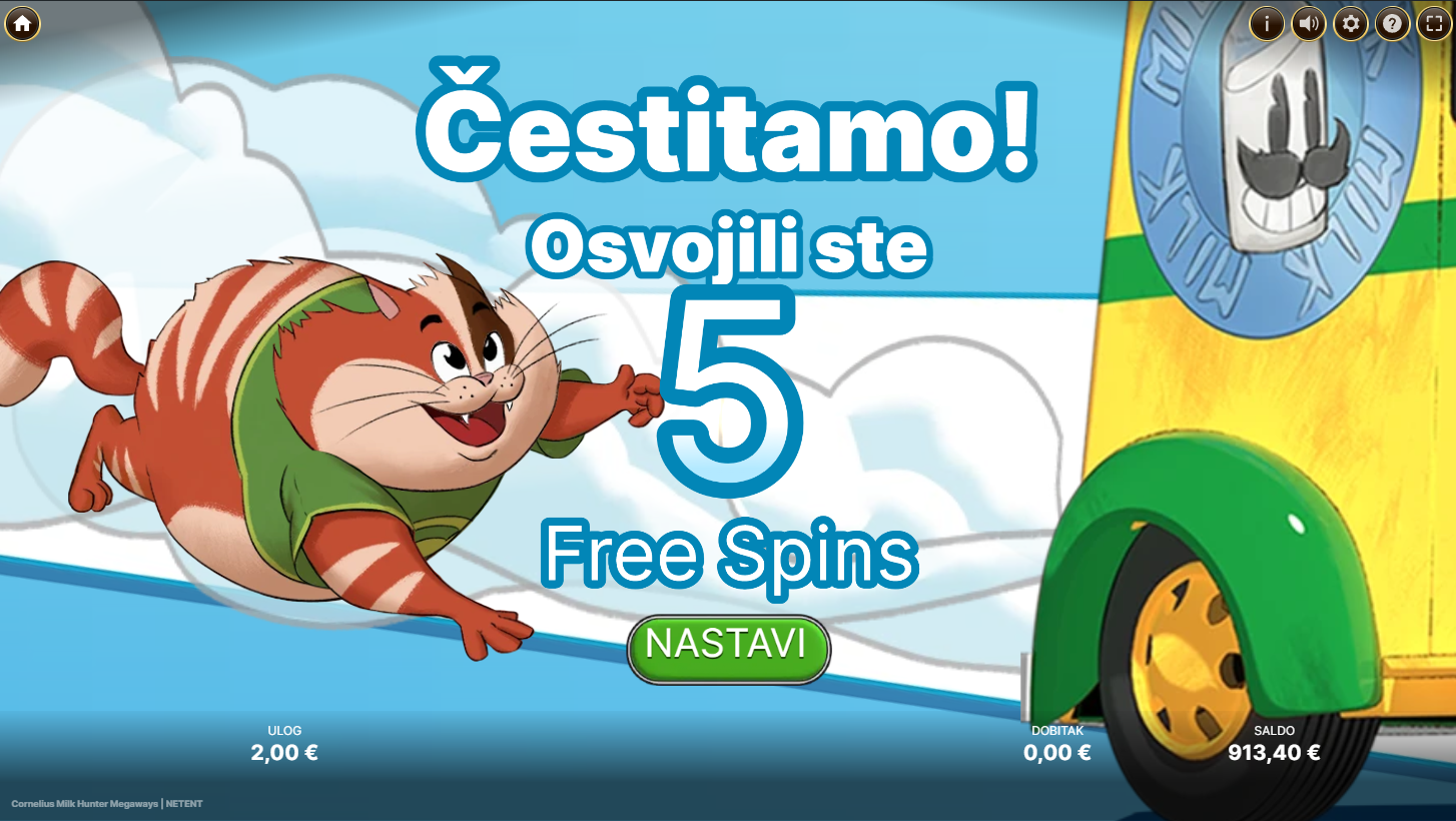 1. Ima li Cornelius Milk Hunter Megaways besplatne vrtnje?