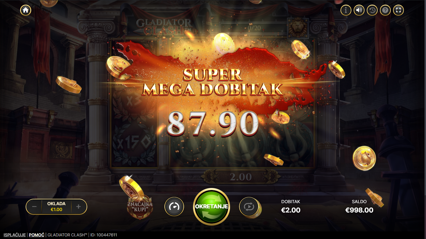Gladiator Clash nudi RTP od oko 96%, što donosi dobru ravnotežu za dugoročno igranje. Volatilnost je srednje visoka pa dobici nisu stalni, ali kad padnu, osjećaj je poput velike pobjede u areni. Bonus runde mogu donijeti iznenađenja i velike isplate. Savršeno za one koji vole rizik, ali i uživaju u spektakularnoj atmosferi. Ova igra traži hrabrost, i nagrađuje je!