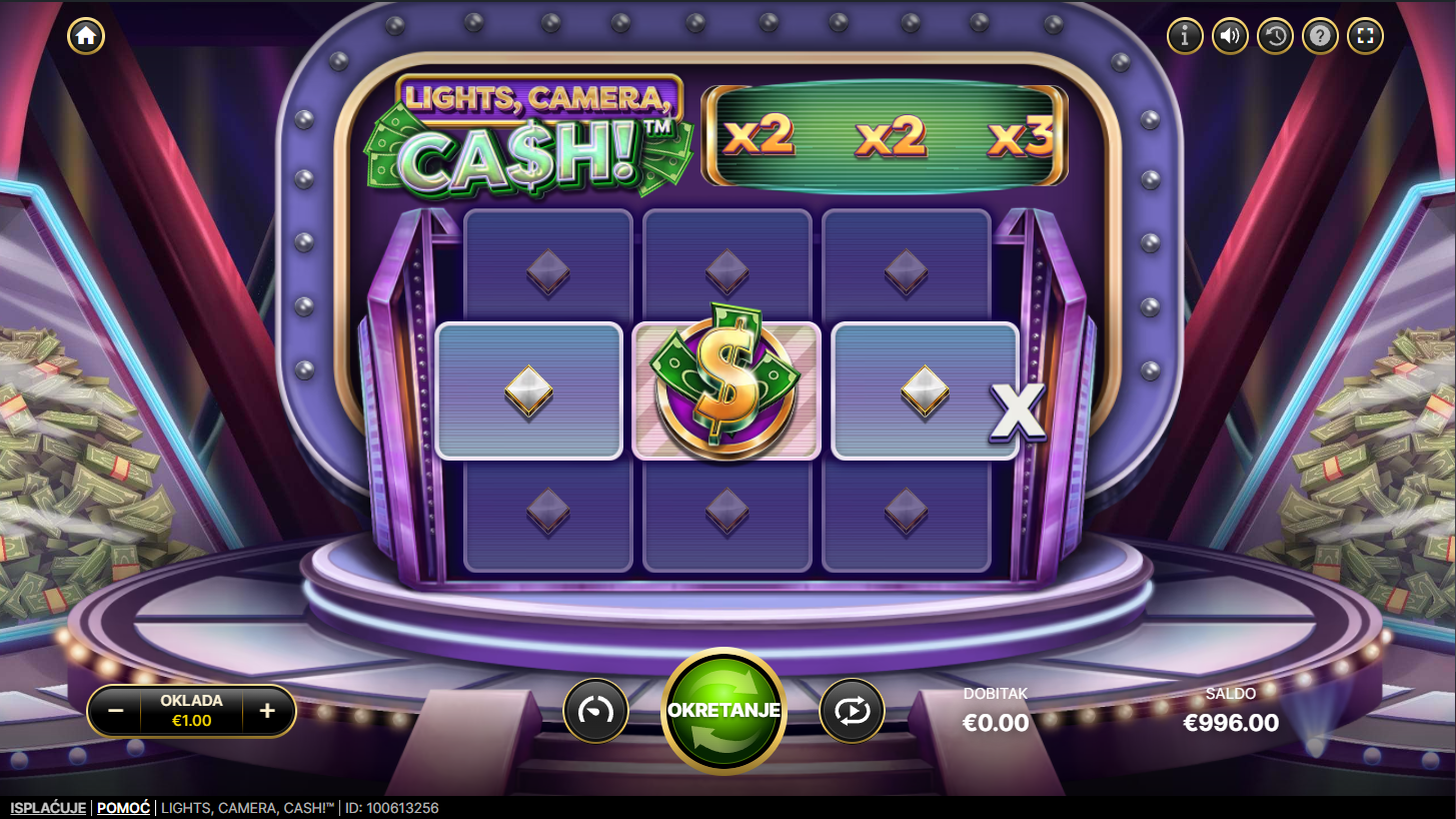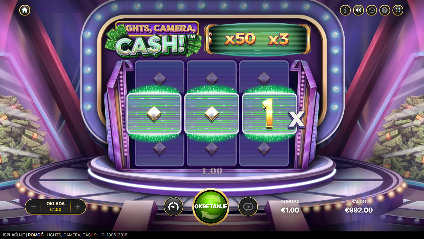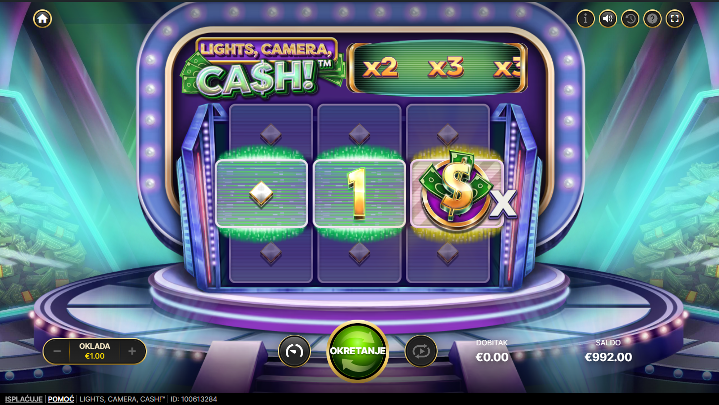 1. Ima li Lights, Camera, Cash! besplatne vrtnje?