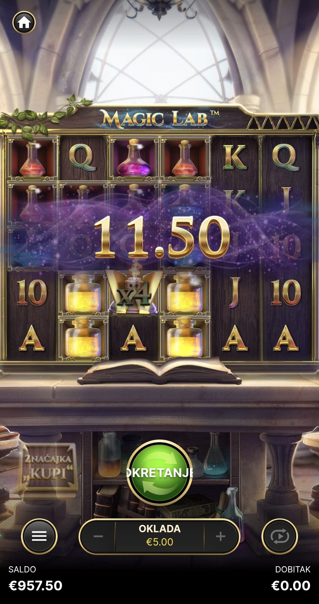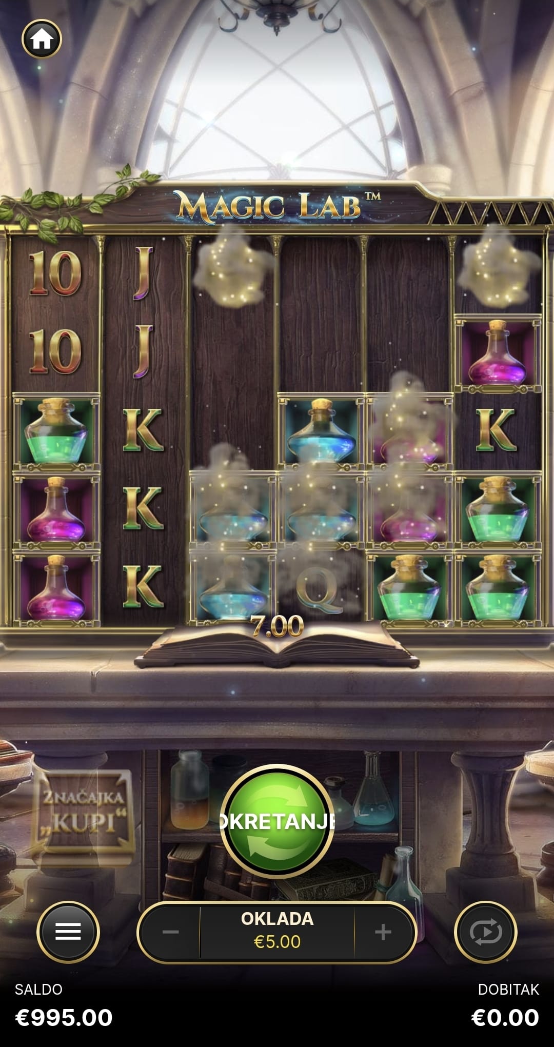 Igra Magic Lab ima RTP od 94.15%, što je vrlo povoljna vrijednost. Zahvaljujući fokusiranosti na osnovnu igru i isplatnu bonus značajku, volatilnost ove igre je srednja.