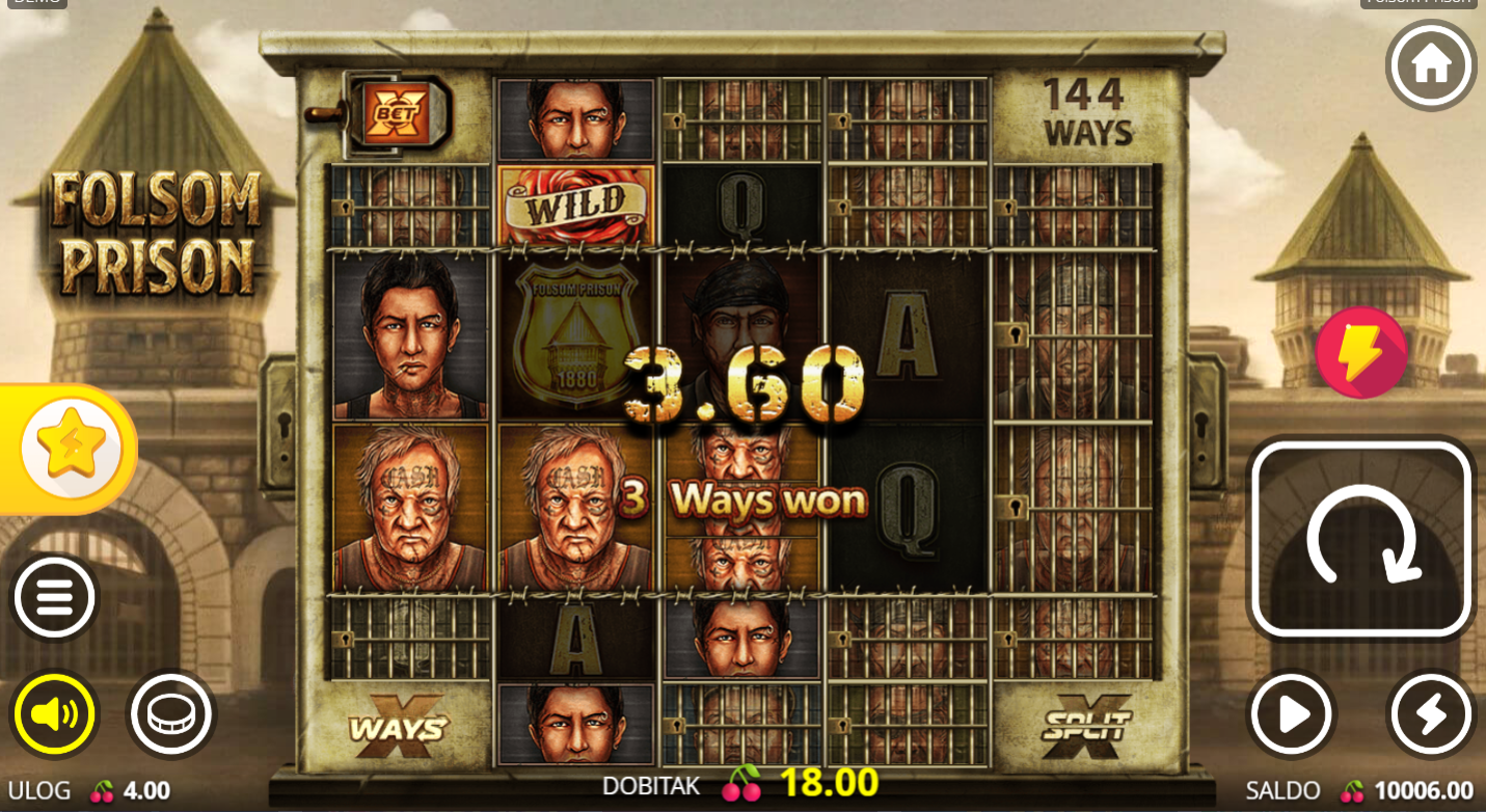 Folsom Prison od No Limit City donosi svijet zatvorskog kaosa. Svaki spin može biti borba za preživljavanje i slobodu. Zatvorske ćelije, čuvari, zatvorenici i improvizirani bonusi stvaraju napetost na svakom koraku, dok atmosfera podsjeća na pravu akcijsku filmsku scenu. Ovdje nailazimo na mračni humor, nepredvidive mehanike i snažan vizualni identitet. Svaka vrtnja otvara nova vrata ćelija, simbole i lančane reakcije.