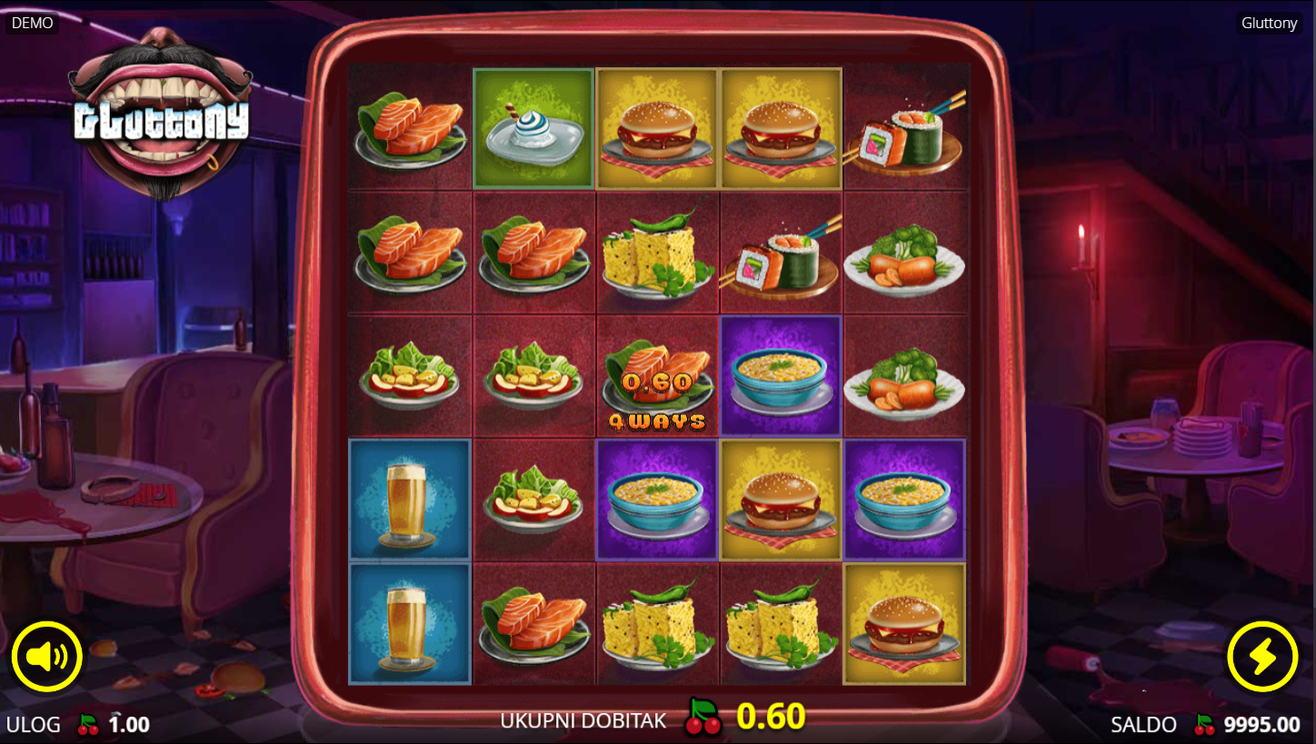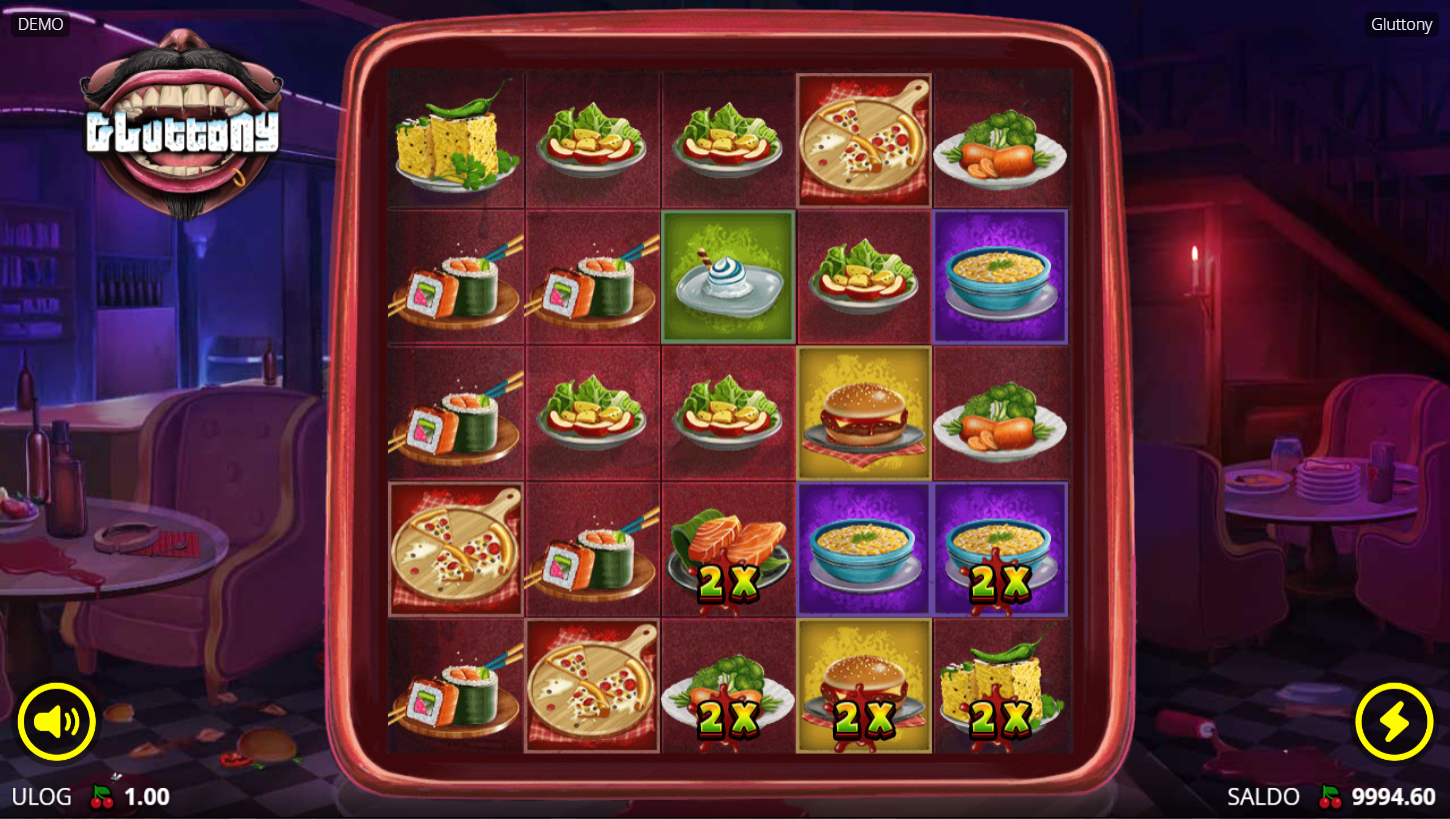 Gluttony od No Limit City vodi te u svijet pretjerivanja, gdje glad nikad ne prestaje! Slot na mreži 5×5 s 3125 načina za dobitak nudi pravu gozbu simbola i nagrada. Tema je luda, groteskna i urnebesna, hrpa hrane, bizarnosti i mračnog humora. Svaki spin može se pretvoriti u eksces pun wildova i multiplikatora. Ako voliš igre koje probijaju granice, Gluttony je pravi desert!