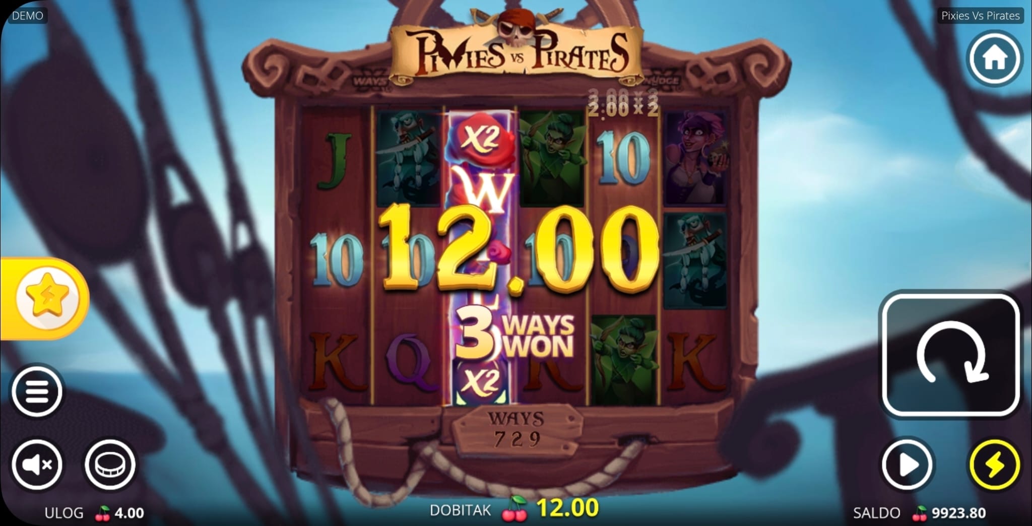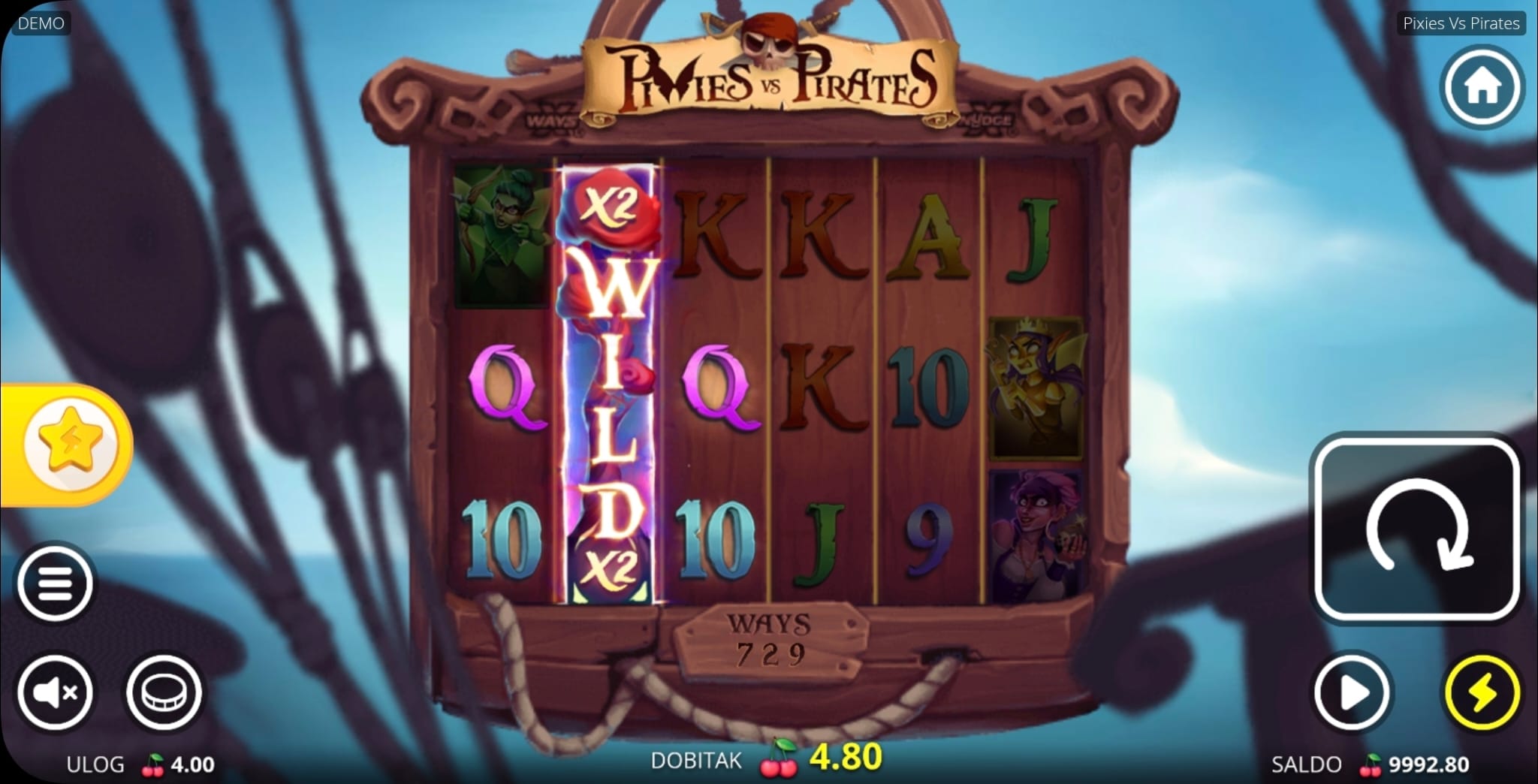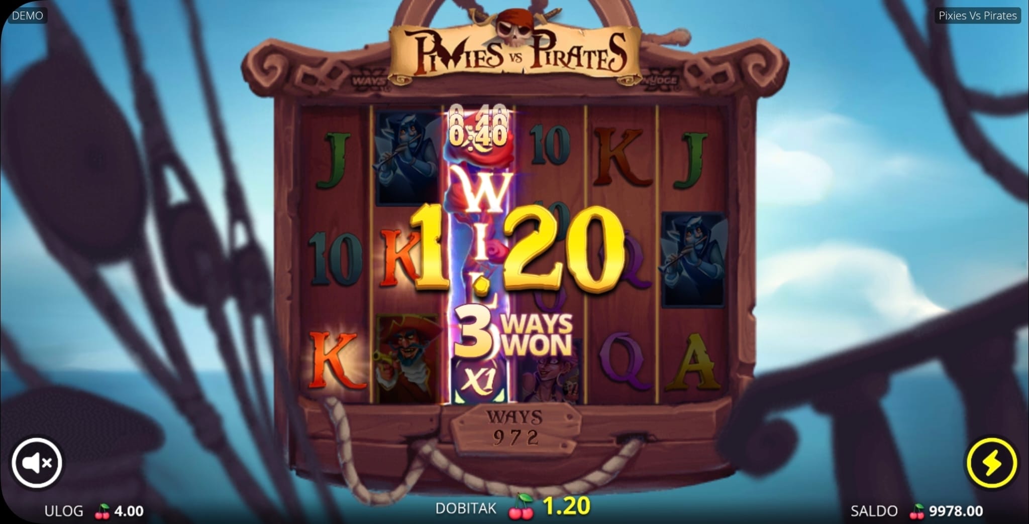 U slotu Pixies vs Pirates providera Nolimit City sukobljavaju se dva svijeta: šarmantne vile i grubi gusari. Igra počinje na rešetki 6x3 s 729 načina za dobitak, ali prikupljanjem simbola Karte rešetka se proširuje na 6x6, otključavajući maksimalnih 11.664 načina za dobitak. Pripremite se za epsku bitku i inovativnu mehaniku!