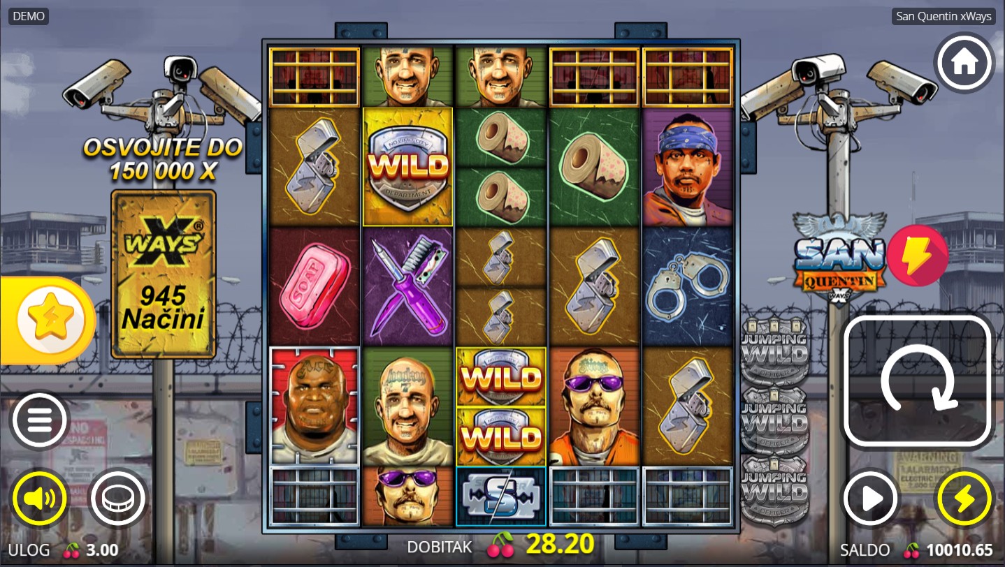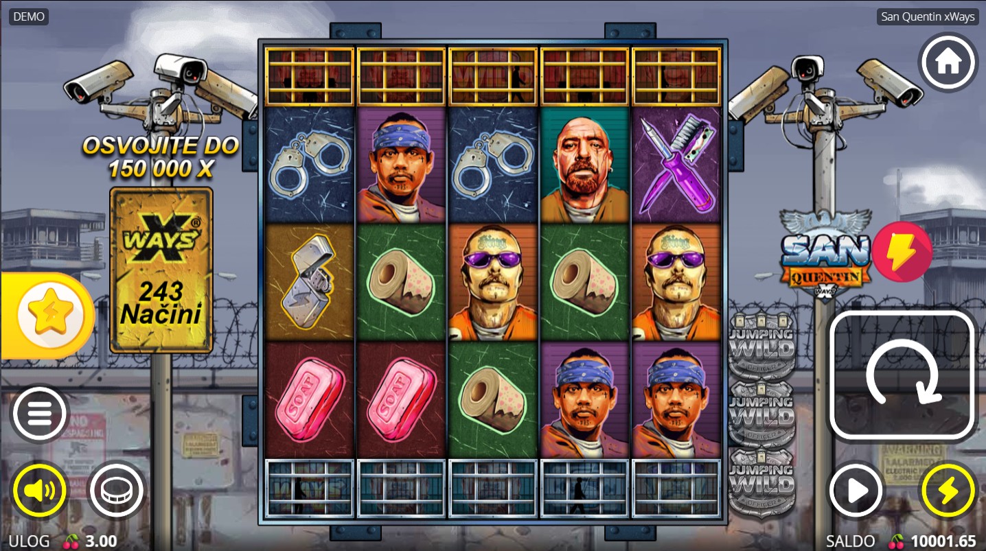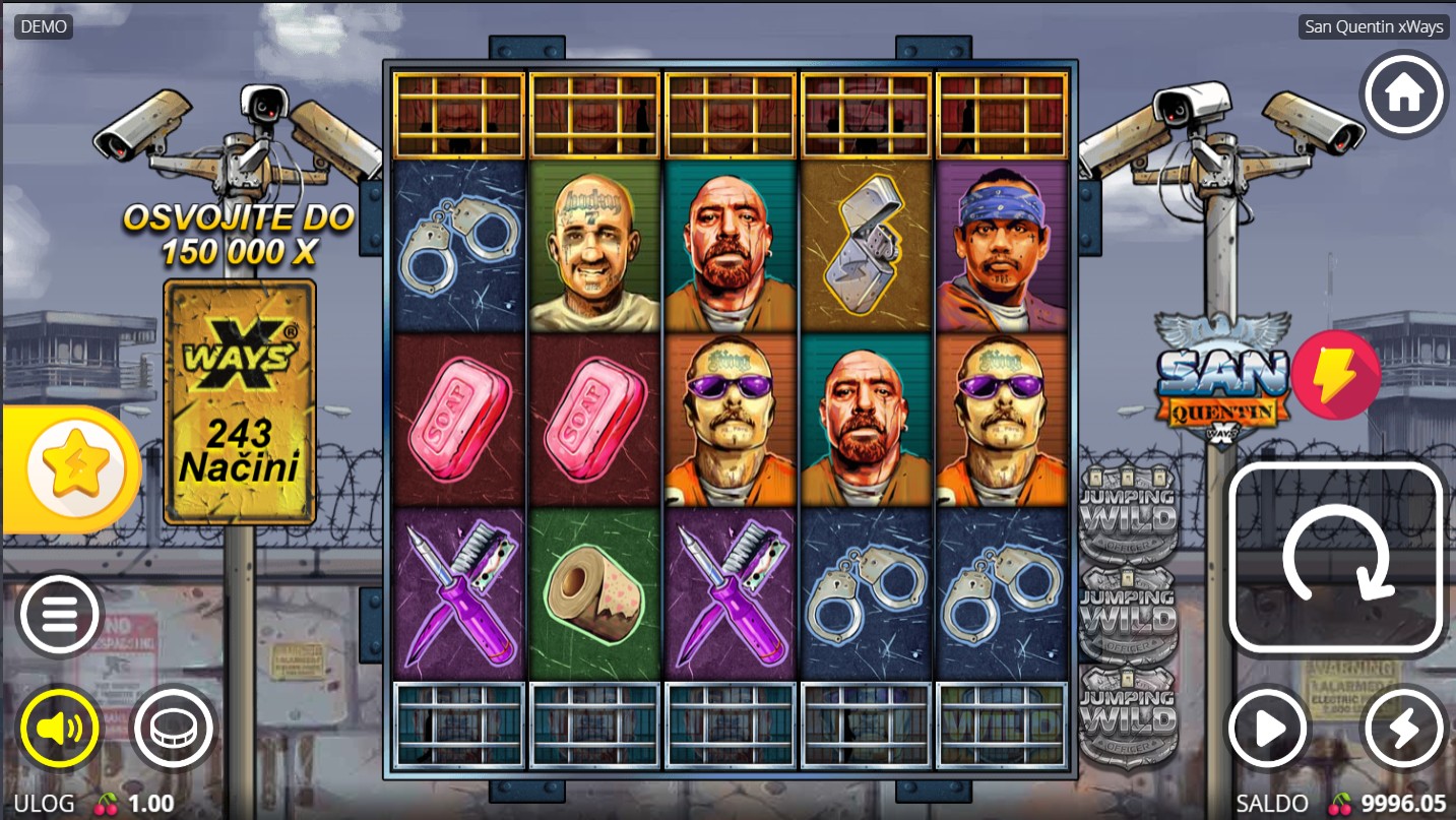 San Quentin xWays vodi te iza zatvorskih zidina gdje opasni likovi i nepredvidive situacije donose uzbuđenje na svakom koraku! Ova adrenalinska slot igra providera No Limit City donosi uzbudljivu zabavu punu bogatih iznenađenja. Posebna atrakcija su Lockdown Spins, besplatne igre koje se aktiviraju pojavom 3 ili više bonus simbola, gdje zatvorski čuvari i zatvorenici preuzimaju scenu i otključavaju moćne značajke s multiplikatorima. Svaka runda nosi novu dozu napetosti i dinamike, ali i uzbudljive zabave.