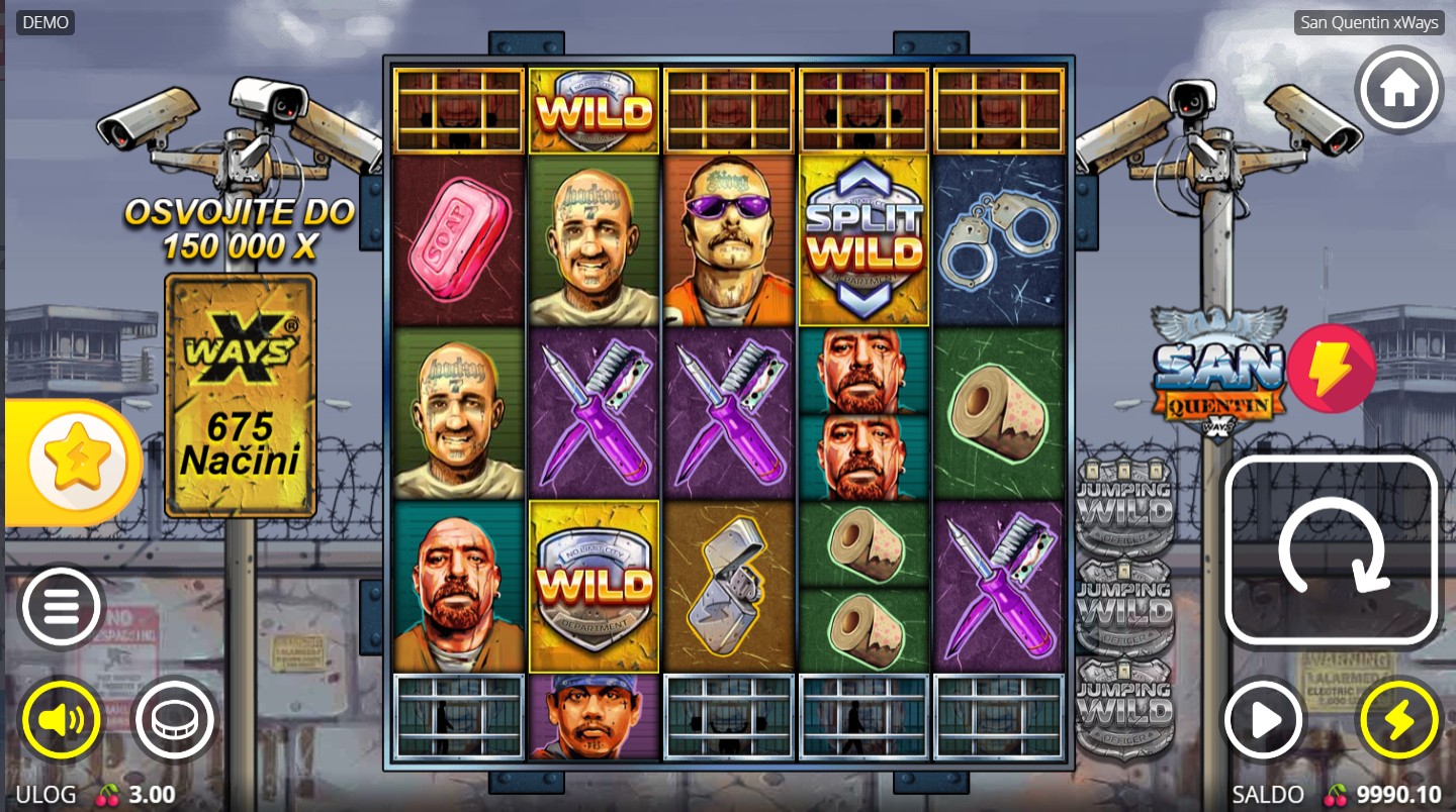 San Quentin xWays se igra na 5 valjaka i 3 reda s 243 mogućih dobitnih kombinacija. Cilj je složiti identične simbole na susjednim valjcima s lijeva na desno. Pojavom 3, 4 ili 5 bonus simbola aktiviraju se Lockdown Spins, gdje posebni multiplikatori i nadogradnje povećavaju šanse za velike nagrade. Uzbudljivost dodatno raste kroz Split Wild simbole i nasumične značajke koje mijenjaju tijek igre.