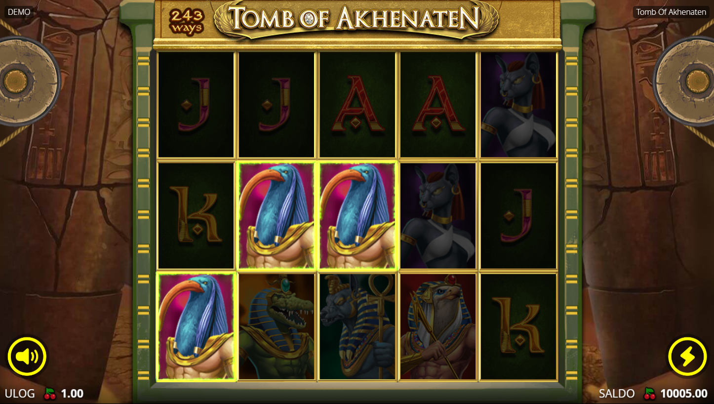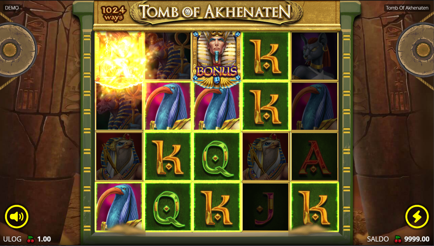 Igra se na 5 valjaka s posebnim lock and expand mehanizmom koji otključava dodatne redove i povećava šanse za dobitke. Svaki dobitni spin produžuje igru i otvara nove mogućnosti za multiplikatore i bonuse. Scatter simboli otvaraju put prema besplatnim vrtnjama, gdje faraon Akhenaten može donijeti najveće nagrade. Pravila su jednostavna, ali kombinacije efekata i dodataka čine igru uzbudljivom i nepredvidivom. Doslovno nikad ne znaš što te čeka iza sljedećeg spina!
