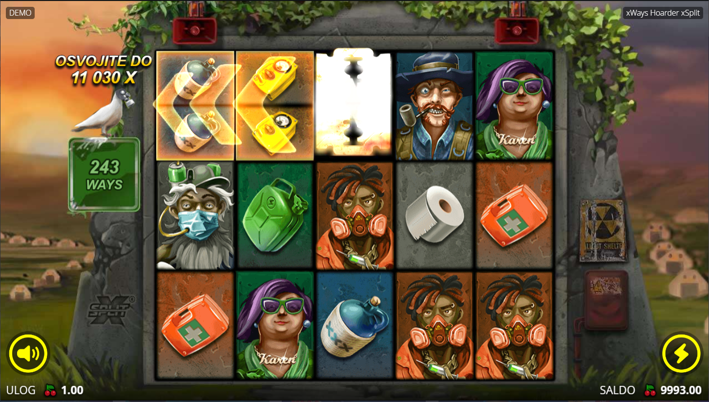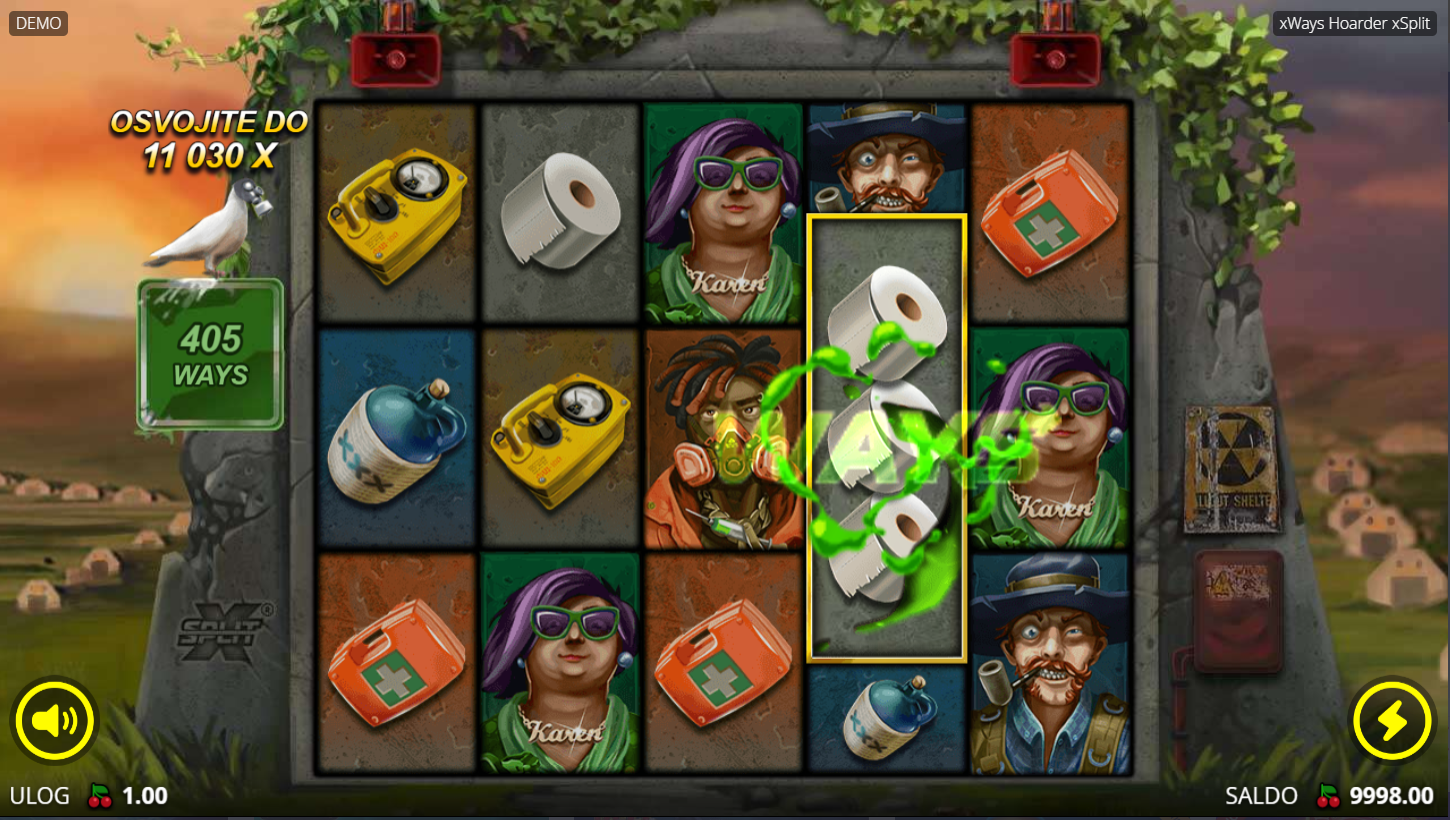 xWays Hoarder xSplit i No Limit City vode te u postapokaliptični svijet pun ludila, toaletnog papira i eksplozija! Sve izgleda kao mješavina Mad Maxa i crne komedije, uz tipičan No Limitov humor. Igra je brza, kaotična i nepredvidiva, s dobicima koji mogu doseći 11030 puta uloga. Ako voliš totalni nered i potencijalne ogromne isplate, ovo je tvoj slot.