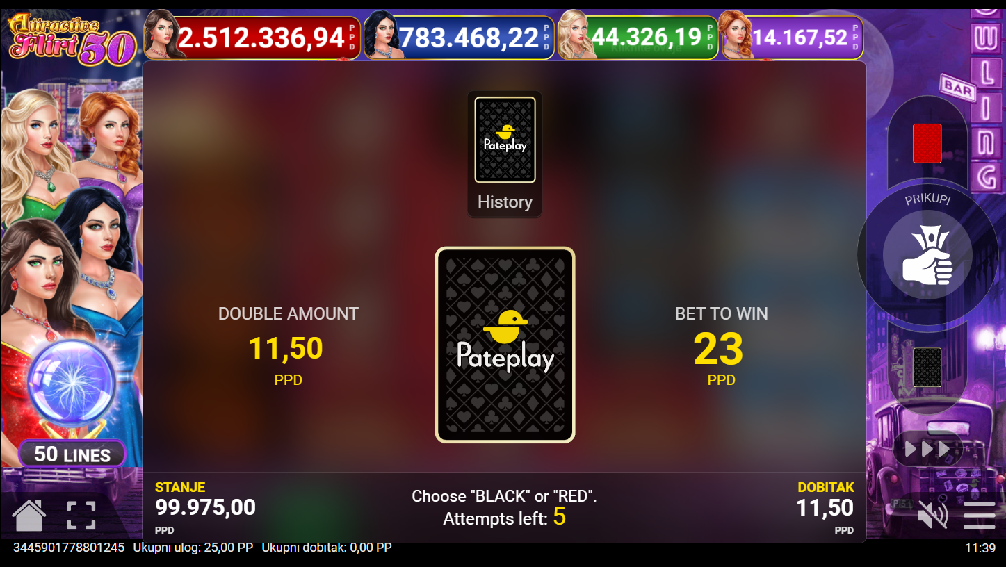 Zavrti valjke i zapleši s dobitkom! Uz 50 linija i moćne Wild simbole, tvoje šanse za pobjedu postaju sve veće. Pojava tri Scatter simbola otključava besplatne vrtnje, gdje strast prelazi u eksploziju nagrada! Svaki spin može biti novi susret sa srećom: elegantan, brz i uzbudljiv. Pravila su jednostavna, ali igra… neodoljiva!