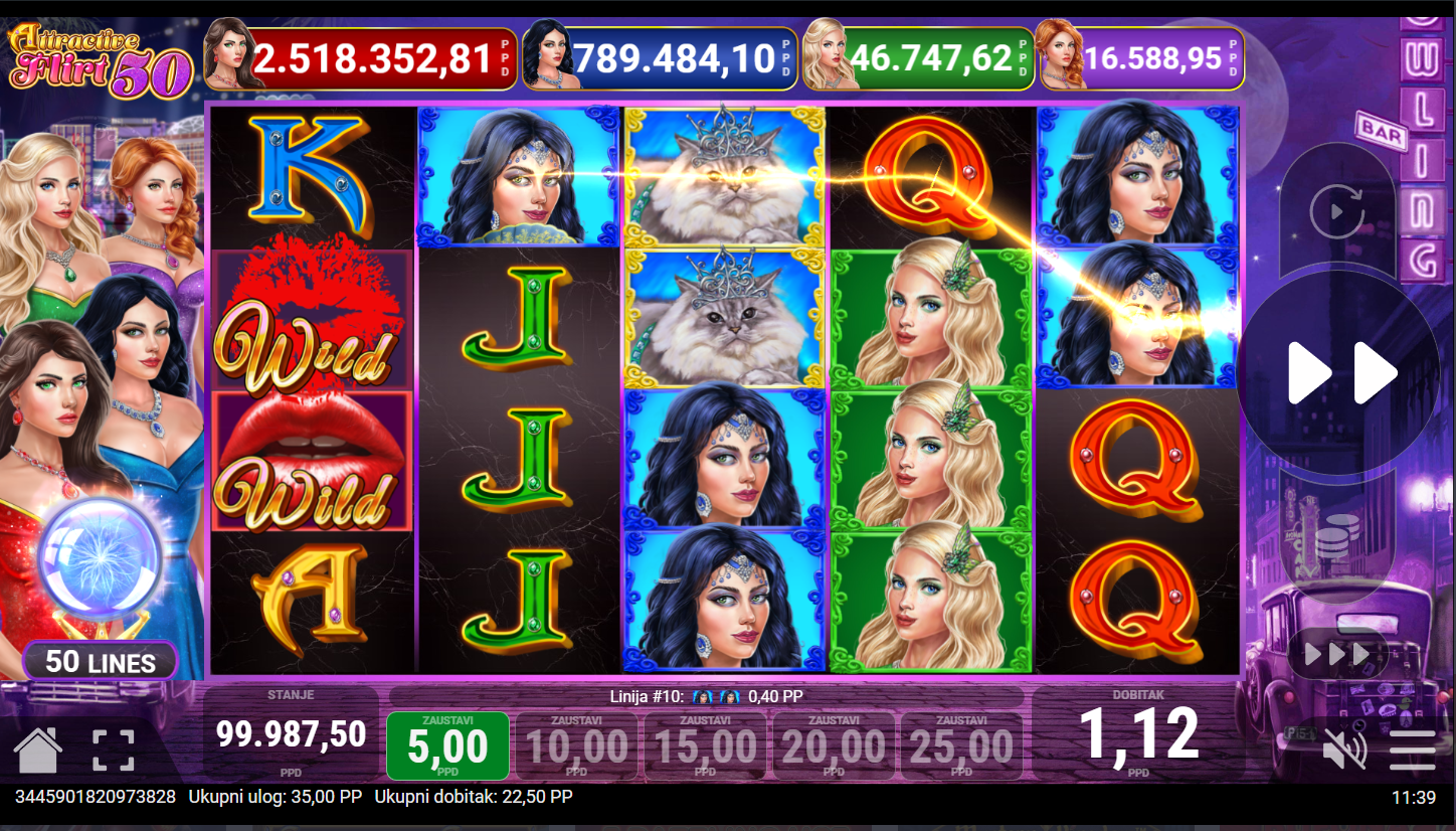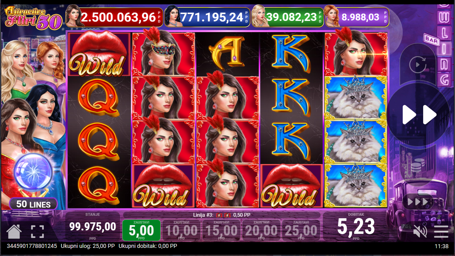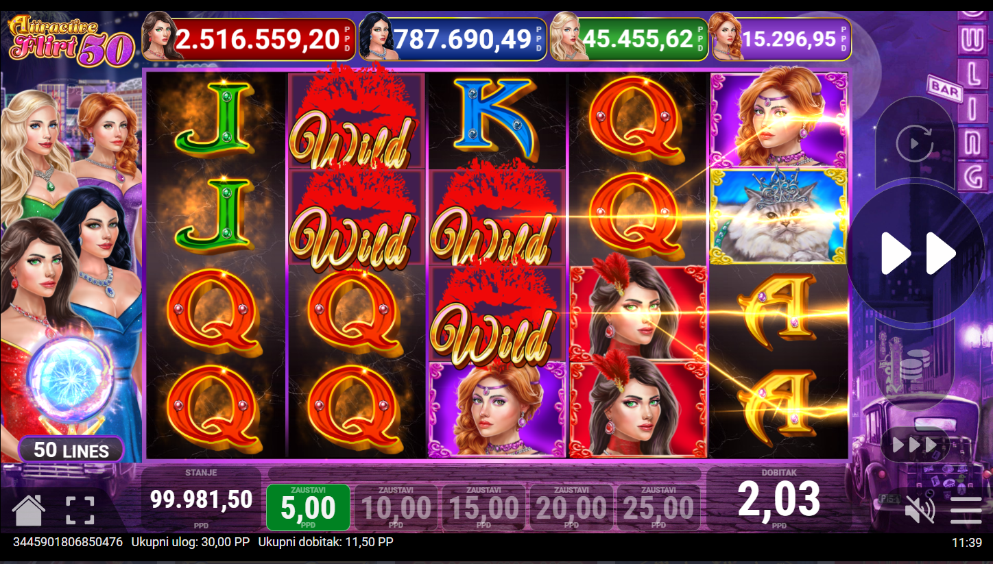 Attractive Flirt 50 ima RTP od oko 96% i srednju volatilnost, što znači savršen balans između učestalih manjih i uzbudljivih većih isplata. Idealna je za igrače koji vole dinamične slotove s notom luksuza i zabave. Kad se valjci zapale od emocija, znaš da je flert prerastao u čistu sreću!