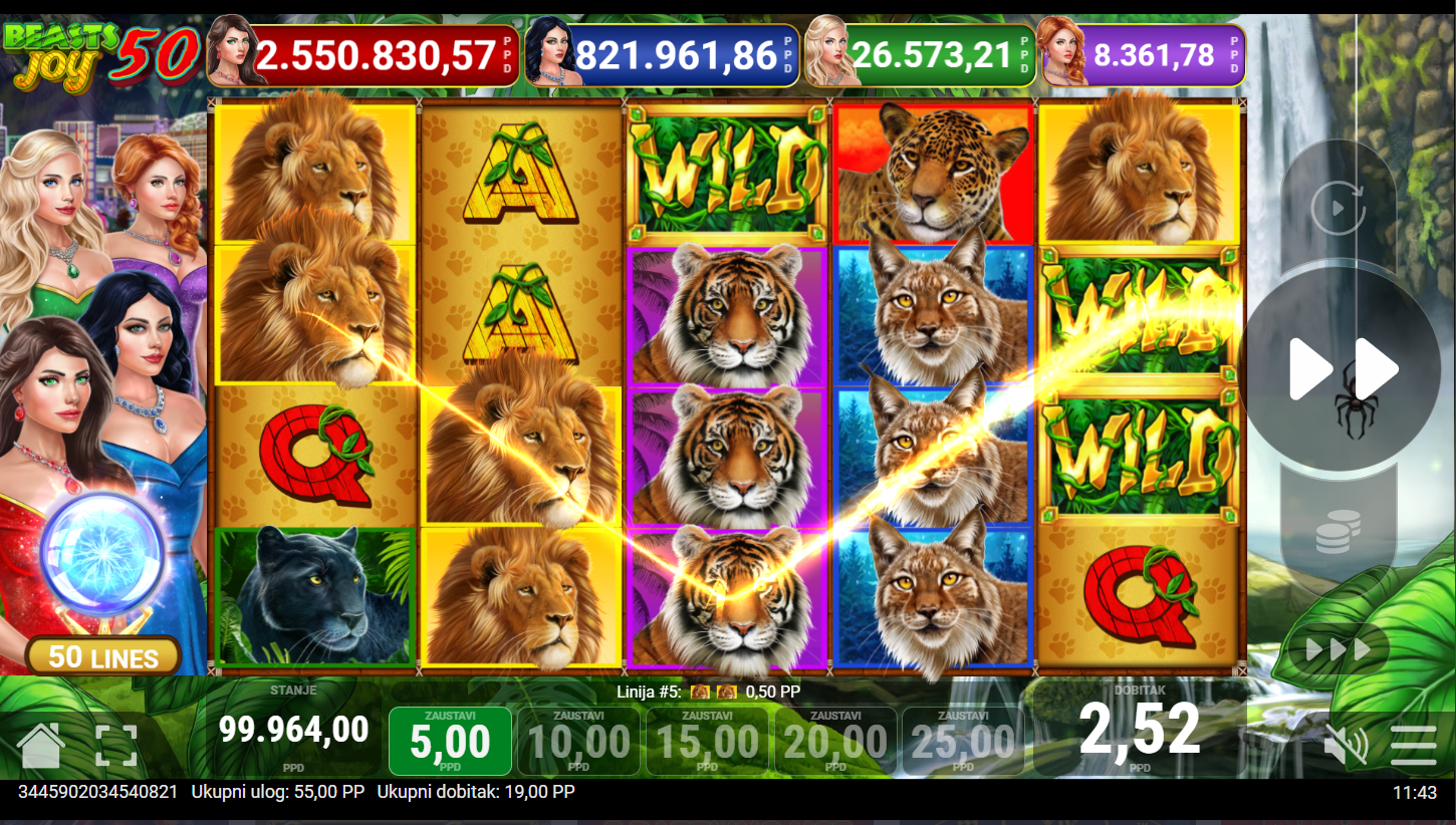 4. Koji su minimalni i maksimalni ulozi u igri Beasts joy 50?
