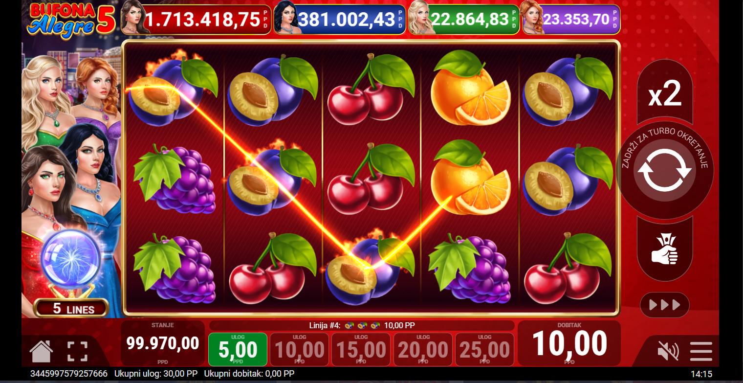 1. Ima li Bufona Alegre 5 besplatne vrtnje?