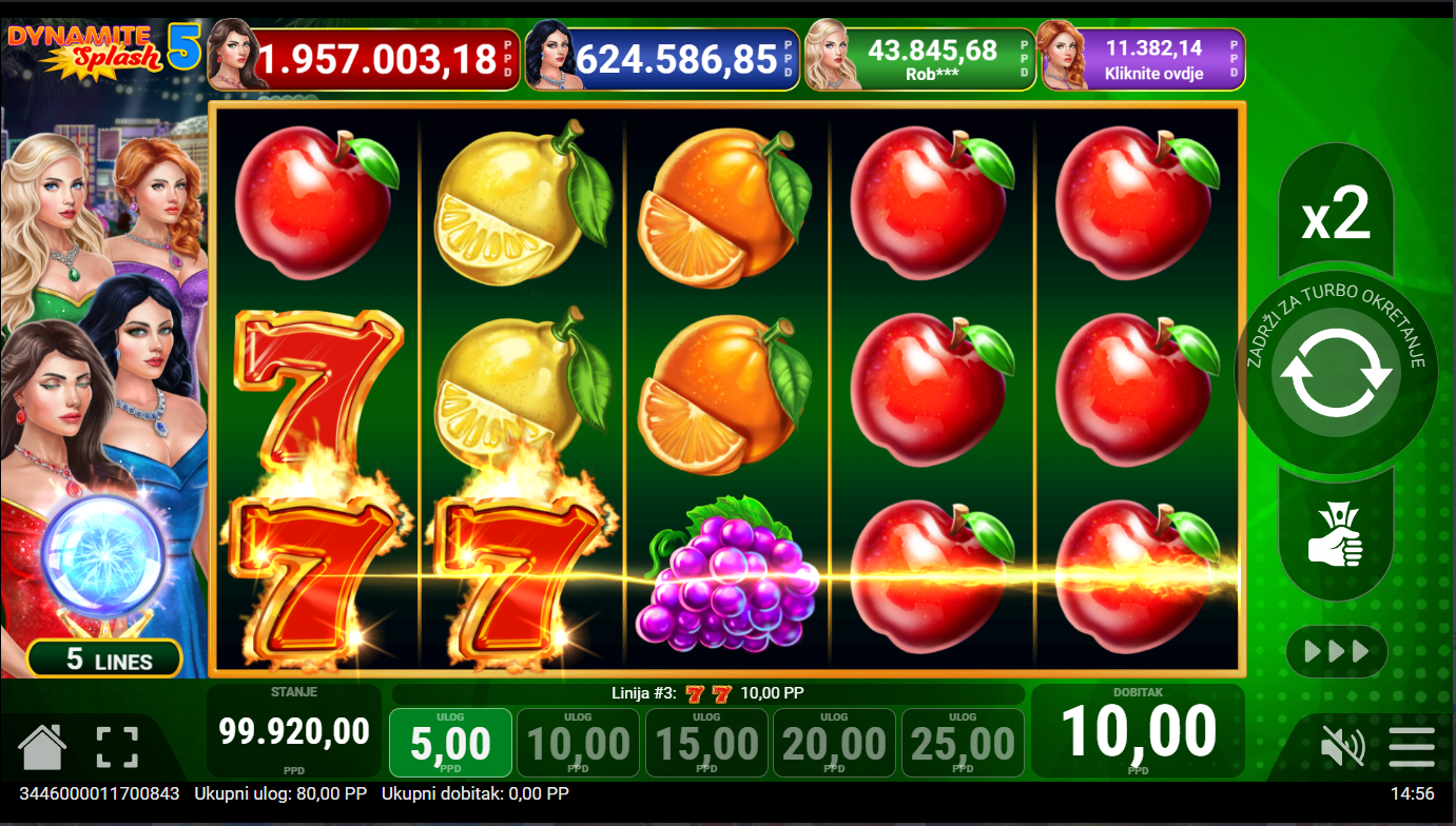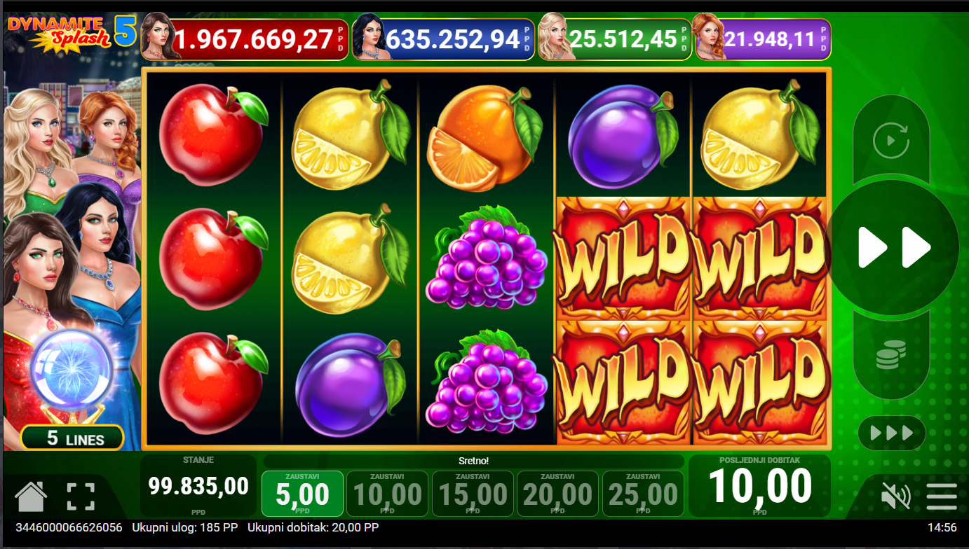 1. Ima li Dynamite Splash 5 besplatne vrtnje?