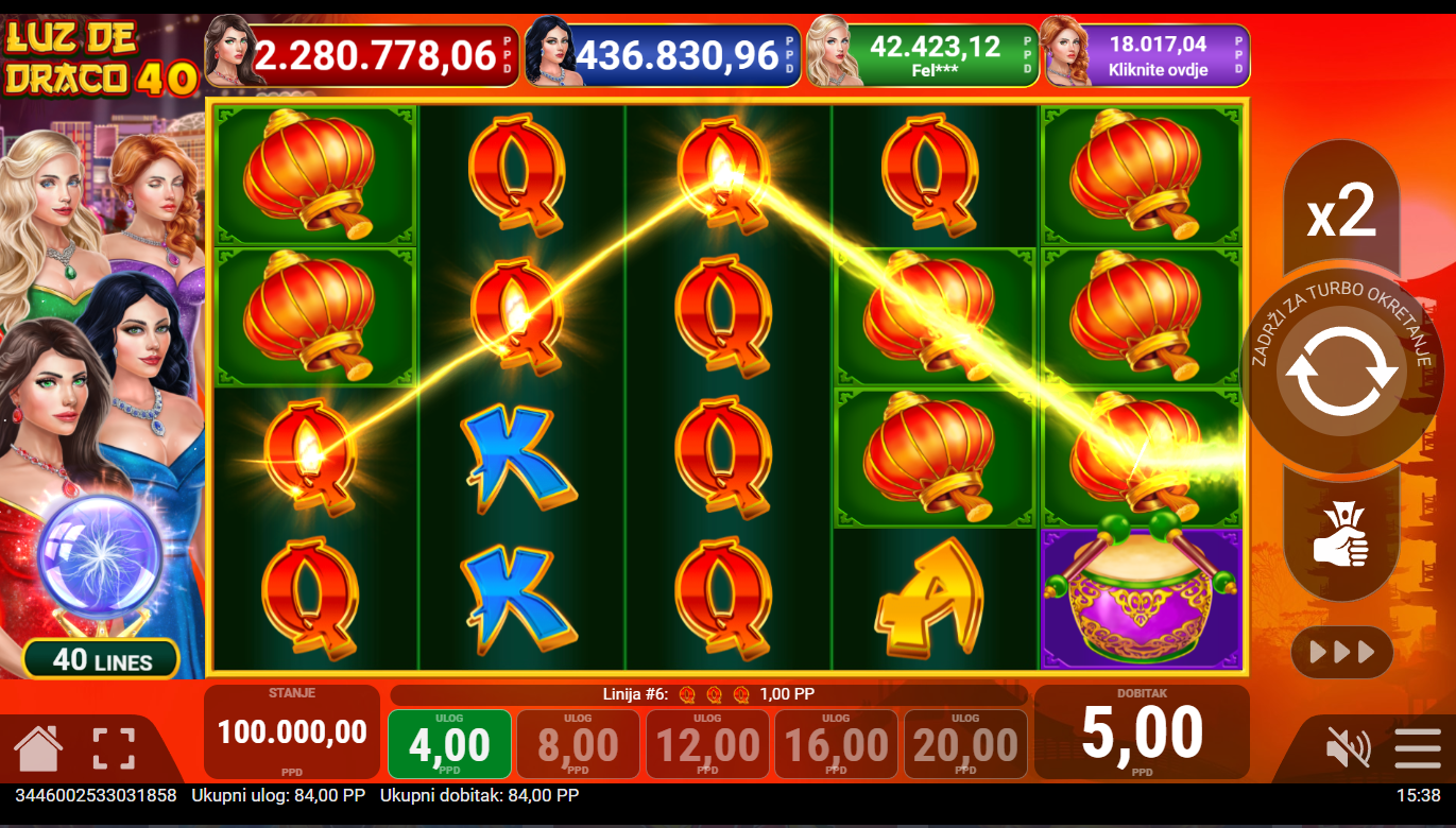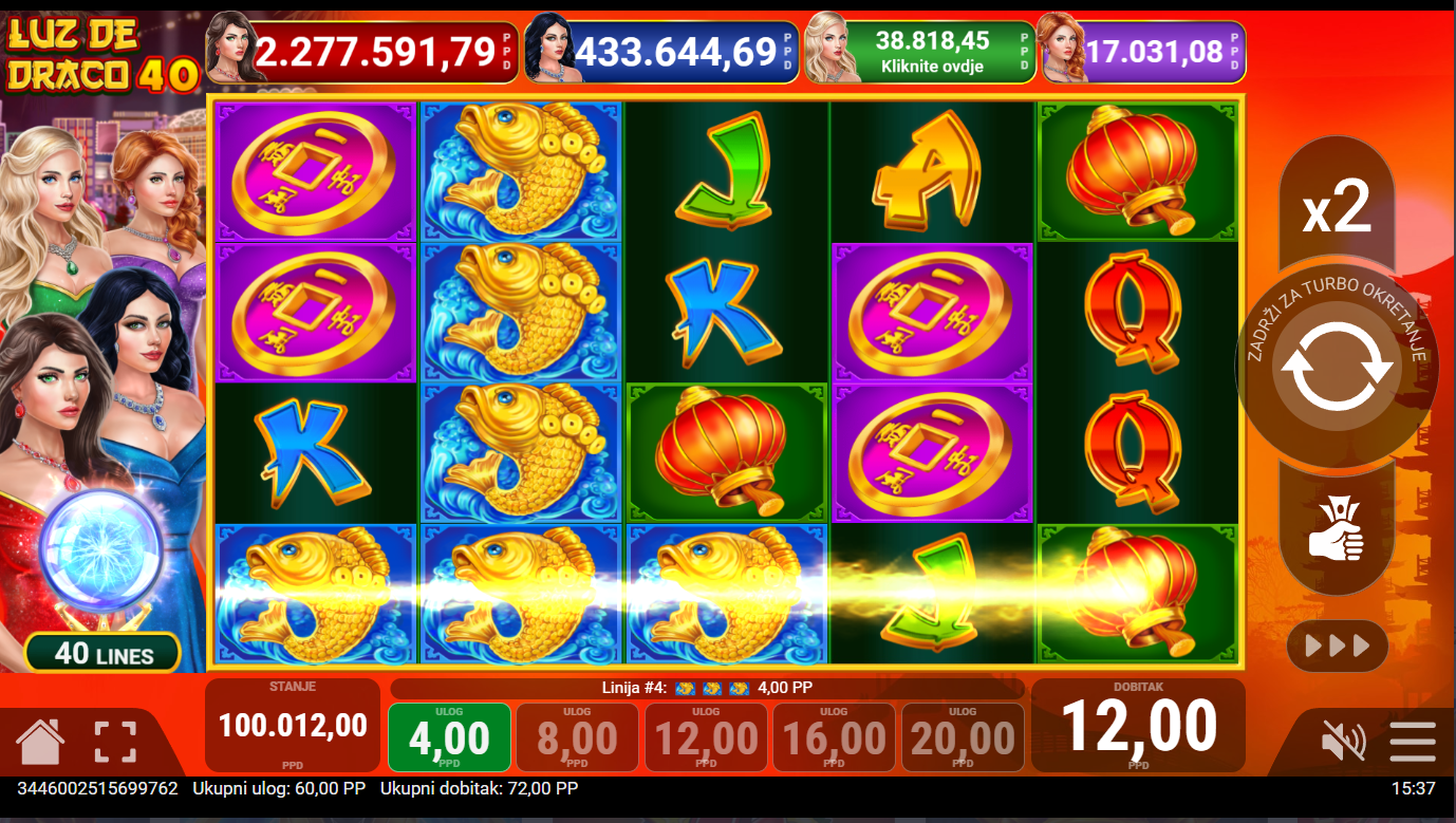 Sve što trebaš učiniti je postaviti ulog, pritisnuti Spin i gledati kako se koluti pretvaraju u vatreni spektakl! Sa 40 linija, mogućnosti za dobitak su ogromne, a posebni simboli mogu otključati bonuse i besplatne vrtnje. Divlji simboli i Scatteri čine svaki spin nepredvidivim i uzbudljivim. Igraj hrabro, jer svaki zmaj nagrađuje one koji se usude riskirati!