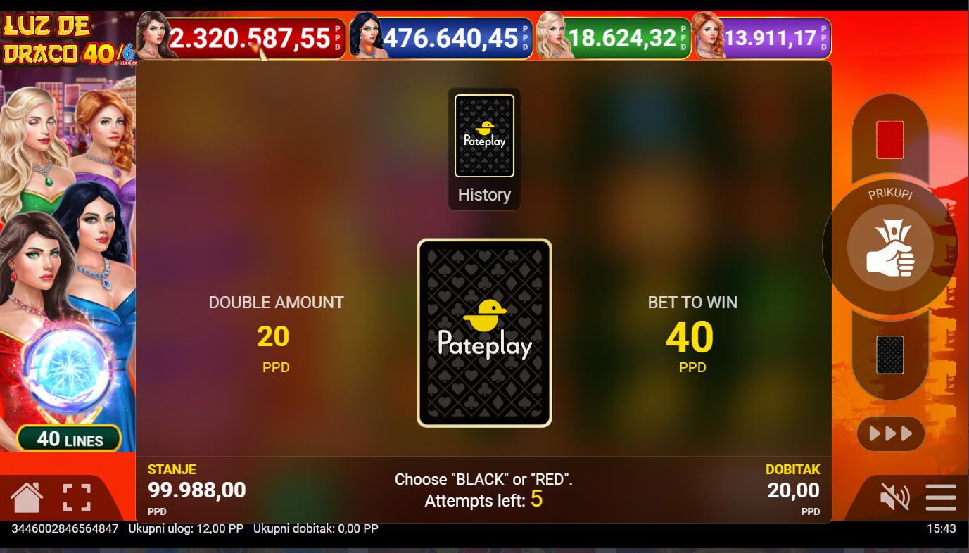 Zmajevi su se vratili i ovog puta s još većom snagom! Luz de Draco 40/6 Reels i Pateplay donose šest koluta punih vatre, bogatstva i epskih trenutaka. Vizualno impresivna i energična, ova igra te uvlači u svijet mistike i moći, gdje svaki spin može zapaliti tvoju sreću. Ako voliš igre koje pršte akcijom i stilom, ovo je tvoj trenutak!