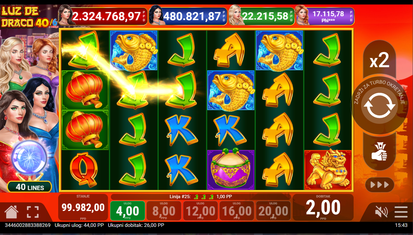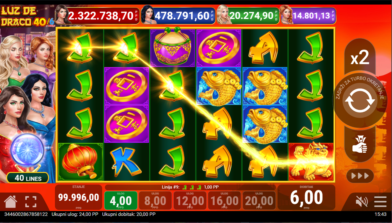 Postavi svoj ulog, pritisni Spin i pusti da zmajevi započnu ples vatre! Šest koluta znači još više kombinacija, još više prilika i još više adrenalina. Scatter simboli pokreću besplatne vrtnje, a Wild simboli donose šansu za eksplozivne dobitke. Ova igra ne prašta, ali nagrađuje hrabre!