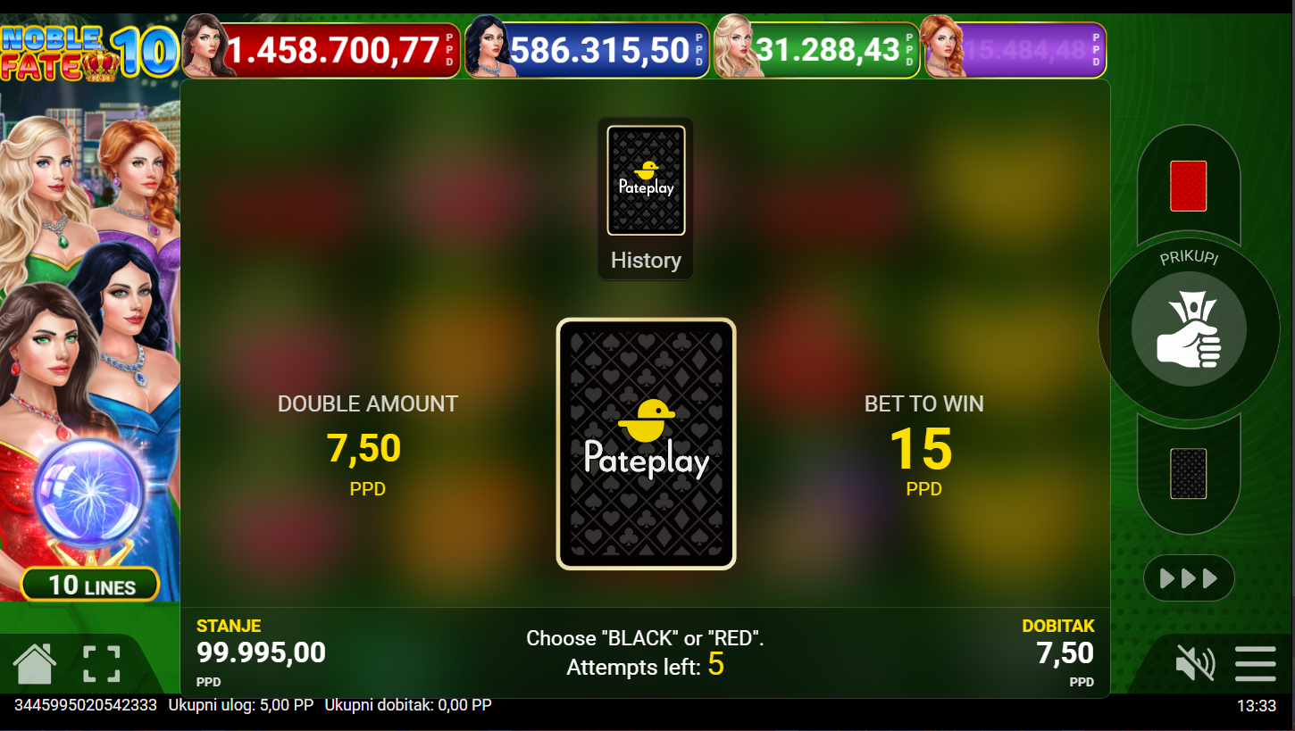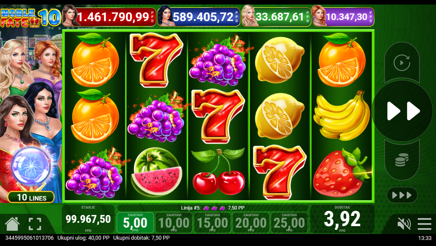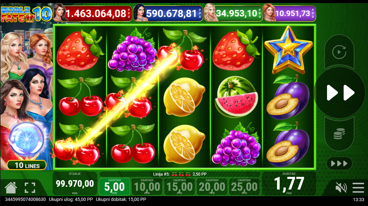 Zakorači u svijet plemenitih heroja i kraljevske sreće s Noble Fate 10! Ova elegantna slot avantura od Pateplay, donosi vitešku čast, blistave dragulje i kraljevske dobitke na svakom koraku. Svaki spin otkriva priču o sudbini, bogatstvu i slavi, dok plemeniti simboli sjaje poput kruna. Tvoja sudbina čeka, hoćeš li je osvojiti?