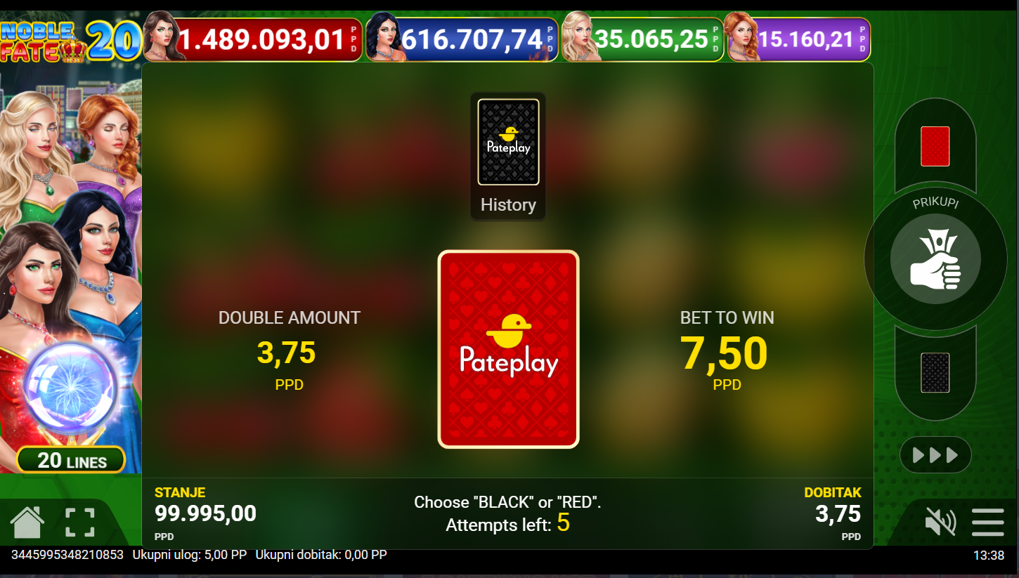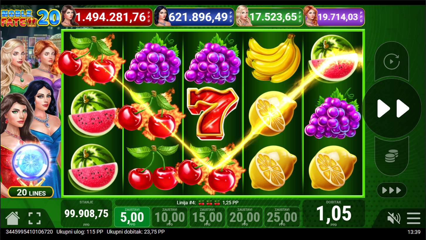 4. Koji su minimalni i maksimalni ulozi u igri Noble Fate 20?