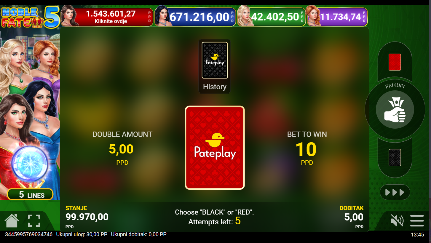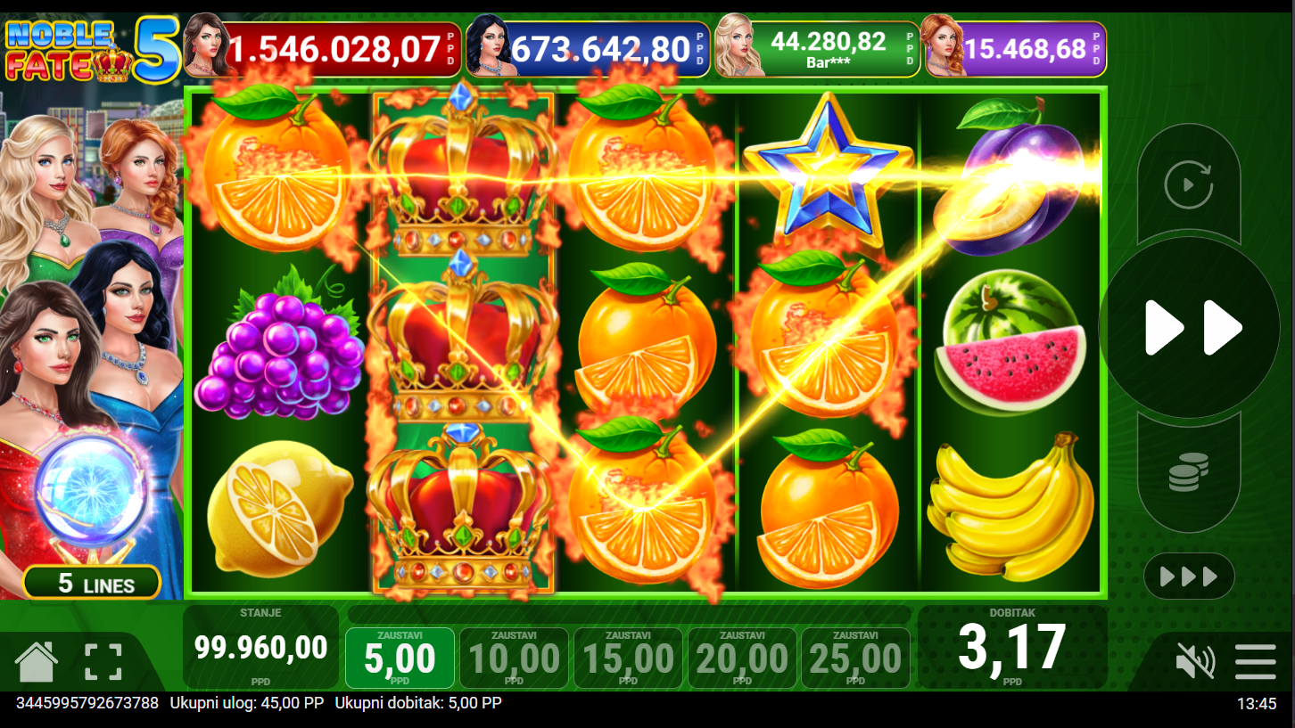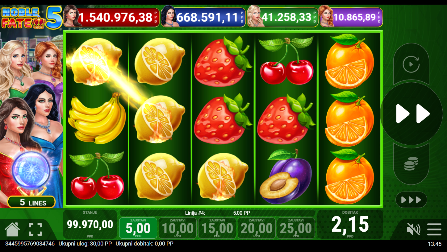 4. Koji su minimalni i maksimalni ulozi u igri Noble Fate 5?