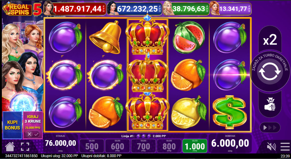 Regal Spins 5 ima RTP 96,37% i srednju volatilnost!