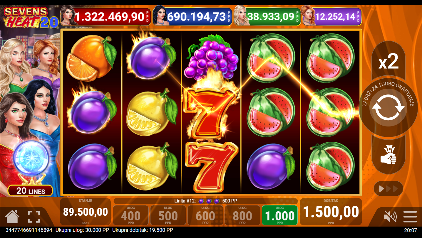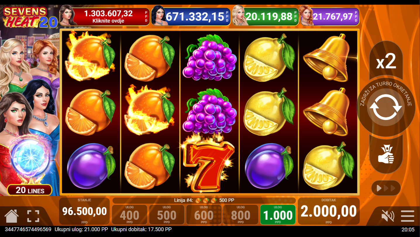 Sevens Heat 20 ima RTP 95,86% i srednju volatilnost