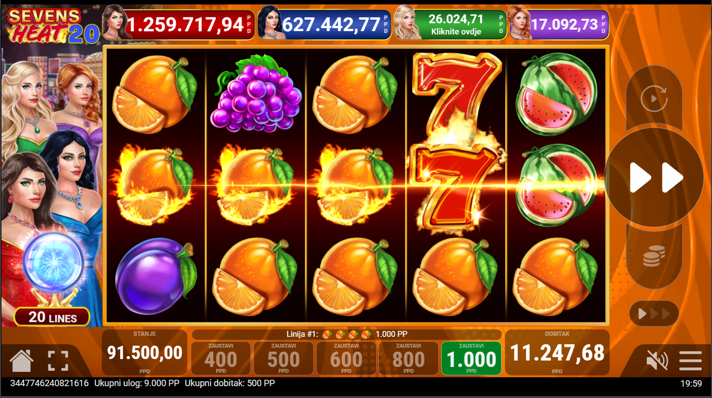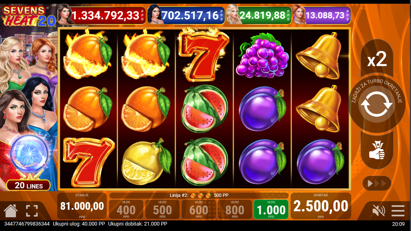 Sevens Heat 20 od Pateplaydonosi klasični voćni slot u modernoj, bržoj i življoj verziji koja odiše pravom kasino energijom! Bubnjevi su ispunjeni sočnim voćem, zvonima i crvenim simbolima. Vizualno je jednostavan, čist i dinamičan što ga čini odličnim izborom za igrače koji vole jasan i brz gameplay bez komplikacija. Igra ima uglađene animacije i brzu mehaniku koja svaku vrtnju čini uzbudljivom.