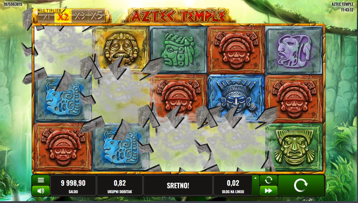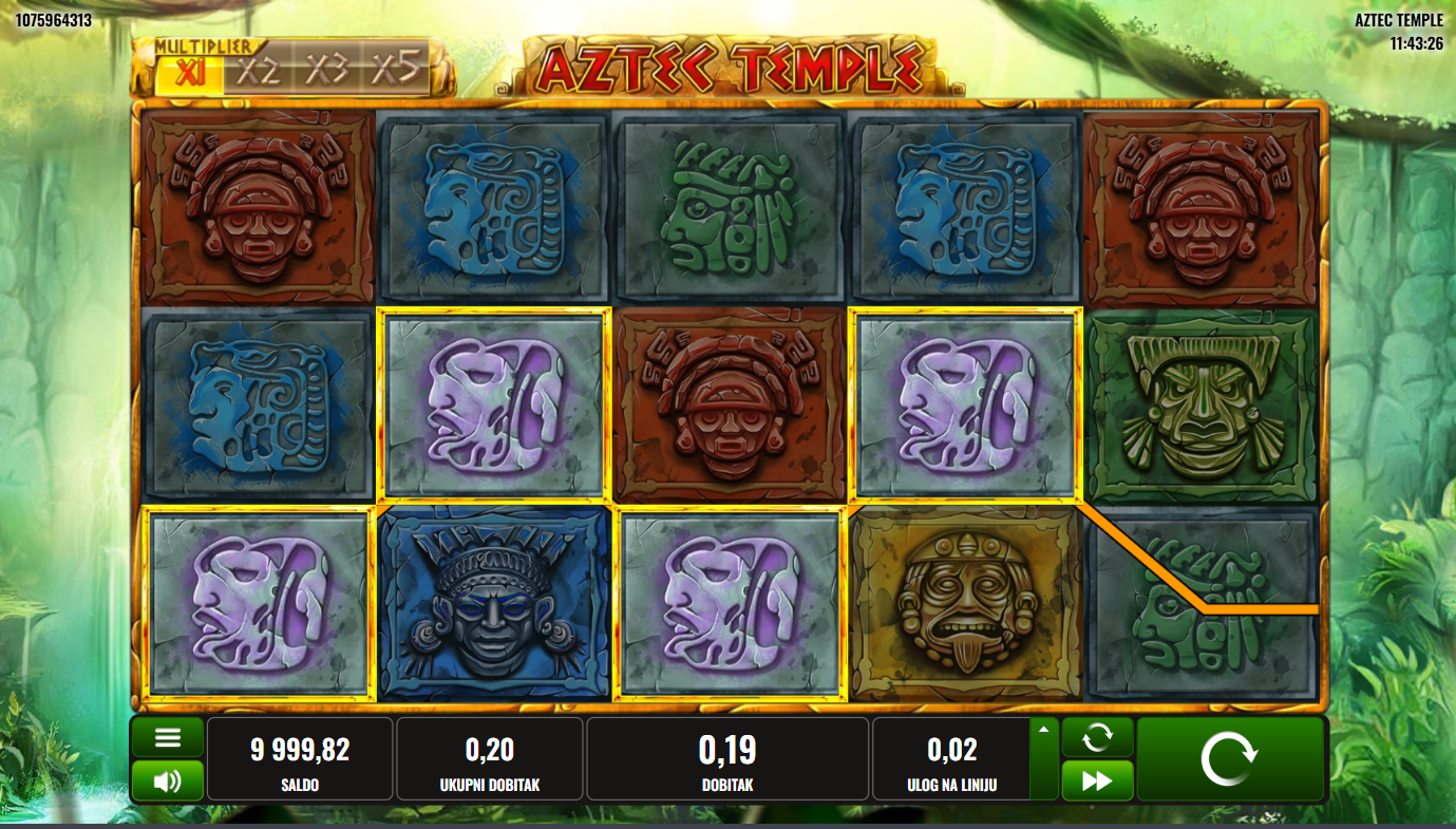 Zakorači u tajanstveni svijet drevne civilizacije, Aztec Temple i Platipus vode te u potragu za zaboravljenim blagom skrivenim duboko u džungli! Svaki spin otvara vrata novim simbolima, svetim artefaktima i skrivenim tajnama. Mistična glazba i dramatični efekti stvaraju dojam prave ekspedicije. Ako voliš avanturu, ovo je tvoja karta za izgubljeno zlato!