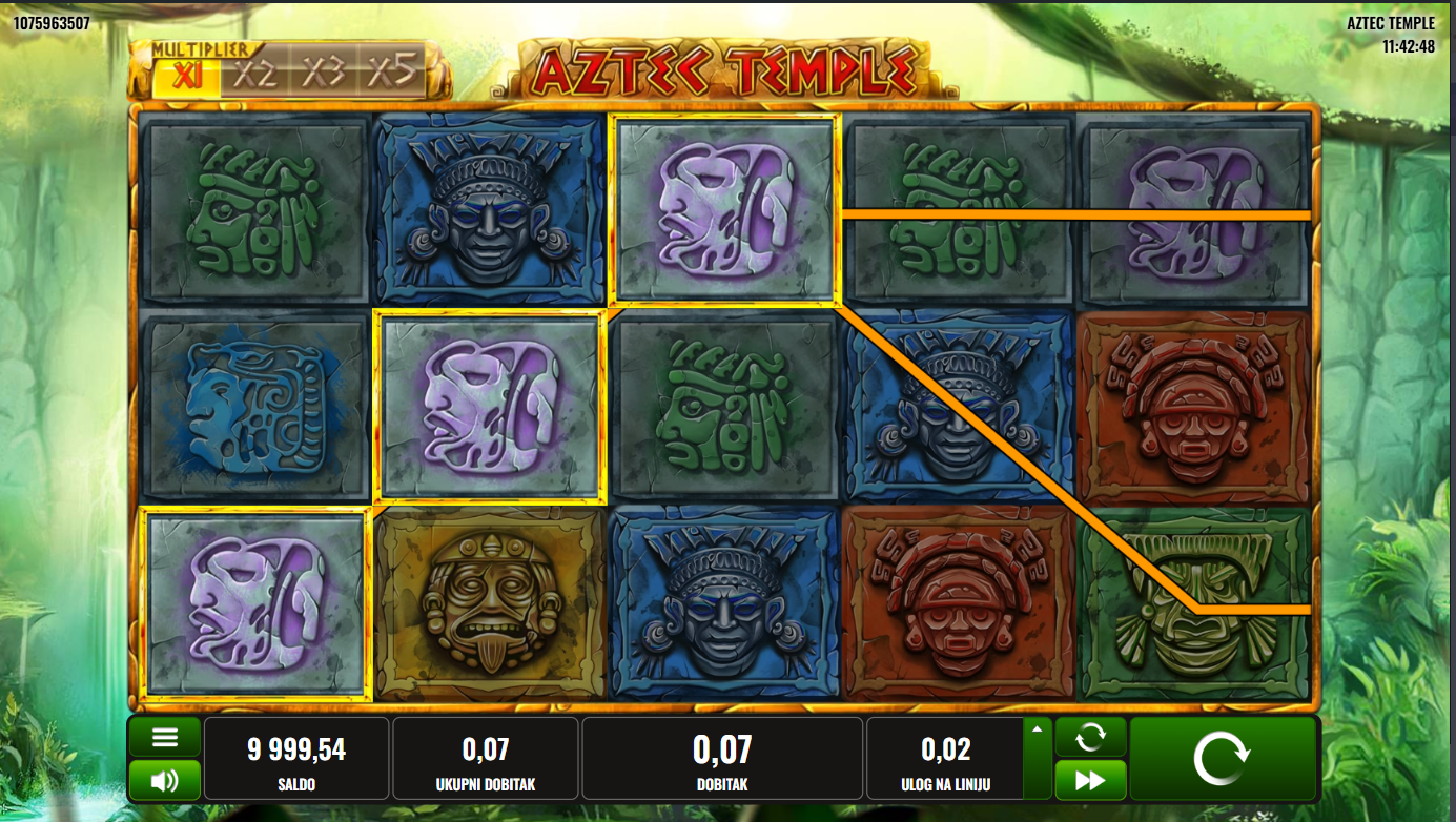 S RTP-om oko 95% i srednje volatilnosti, Aztec Temple nudi odličan balans između redovitih dobitaka i napetih trenutaka iščekivanja. Kad se značajke aktiviraju, nagrade mogu biti pravo zlato, baš kako i priliči aztečkoj legendi. Savršen je za igrače koji vole iznenađenja i osjećaj napretka tijekom igre.