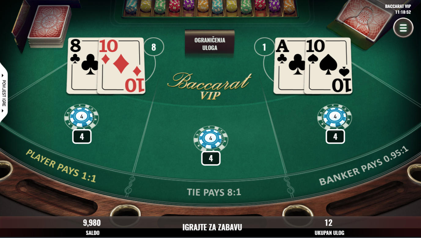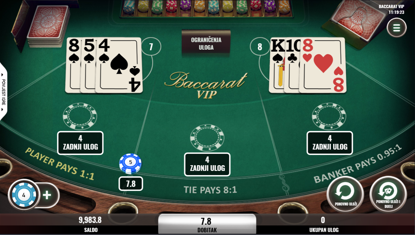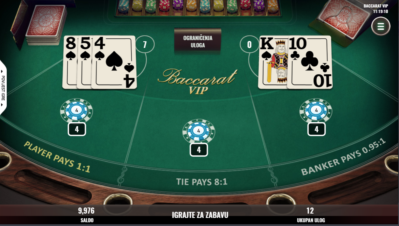 4. Koji su minimalni i maksimalni ulozi u igri Baccarat VIP?
