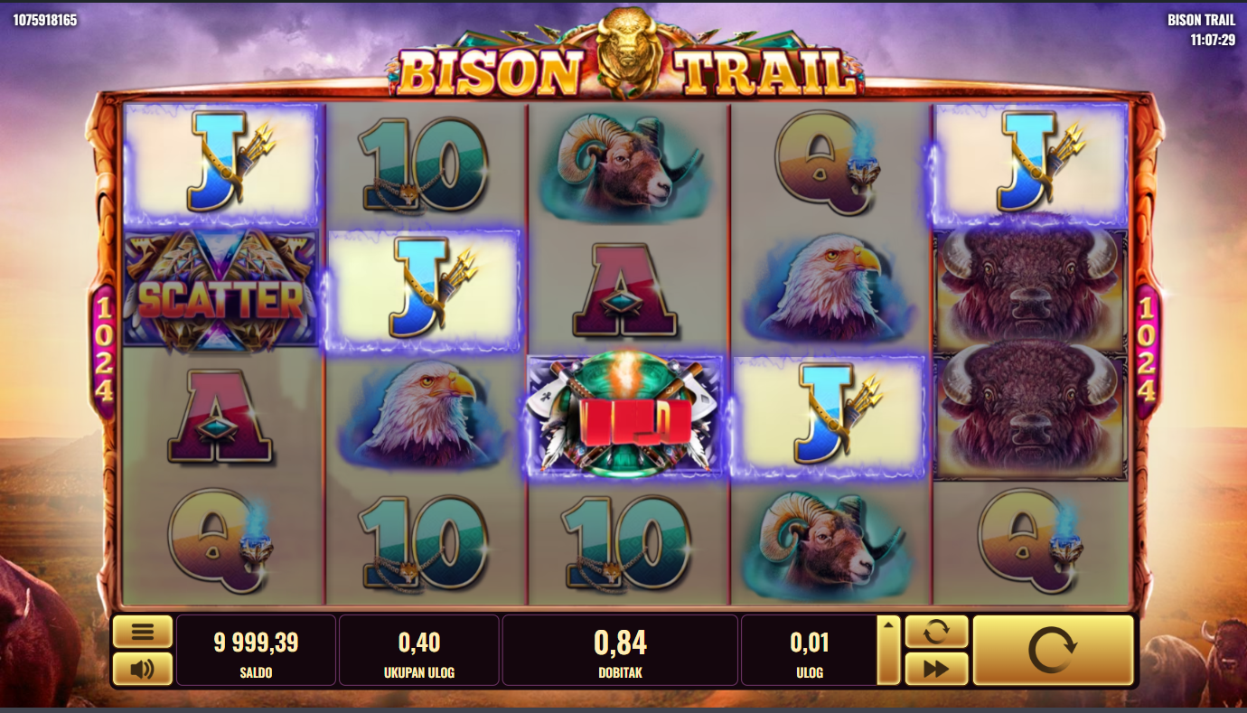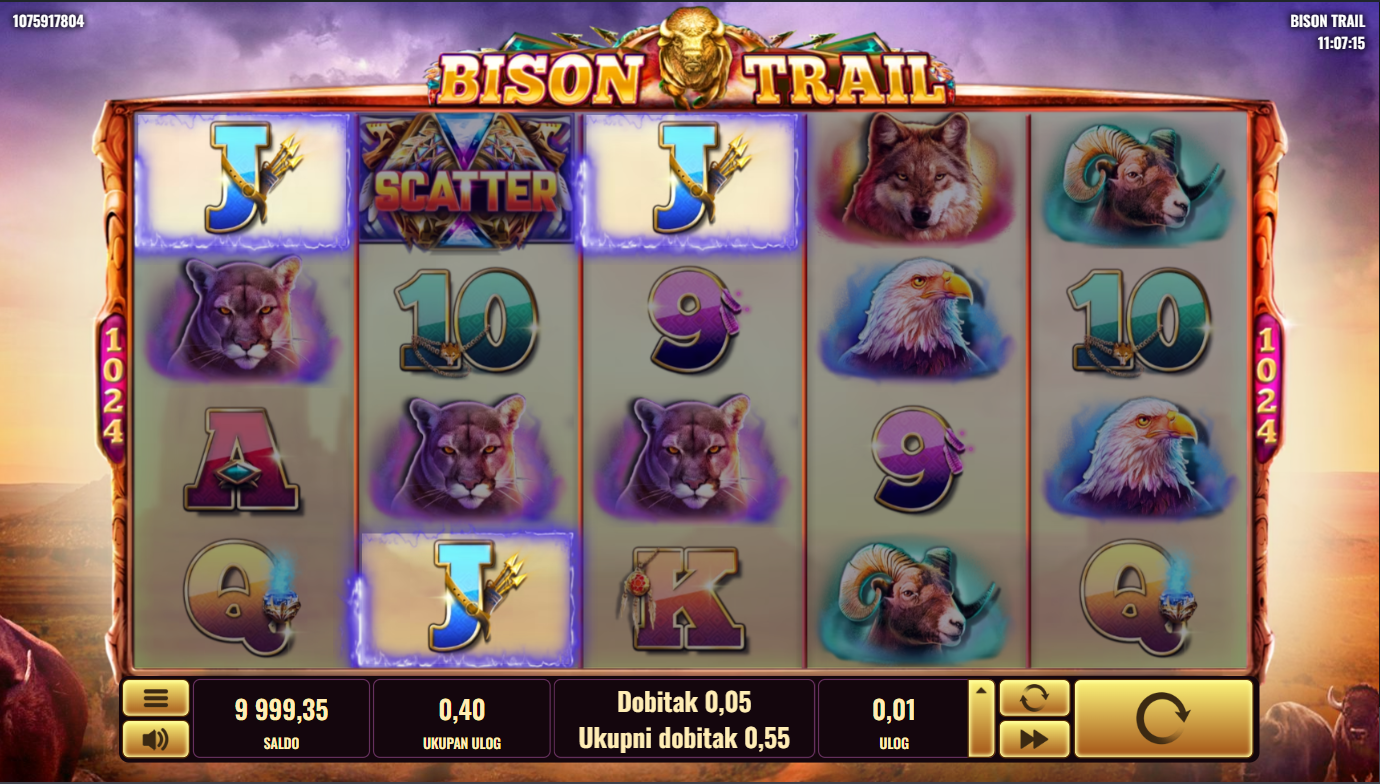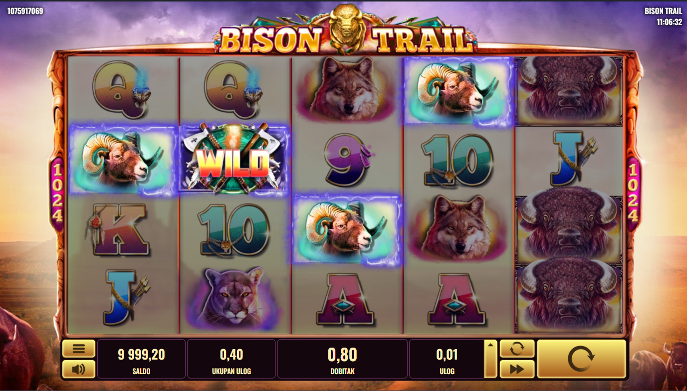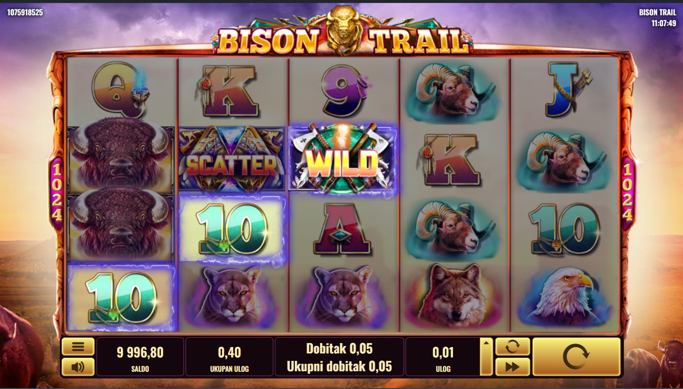 Postavi svoj ulog, pritisni Spin i dopusti da te vode bizoni! Traži Wild i Scatter simbole jer oni otključavaju besplatne vrtnje i bonus značajke. Kad se bisoni poslože na ekranu, dobici mogu eksplodirati jer Wildovi povećavaju šanse za velike kombinacije. Svaki spin može pretvoriti tišinu prerije u pravi stampedo dobitaka!