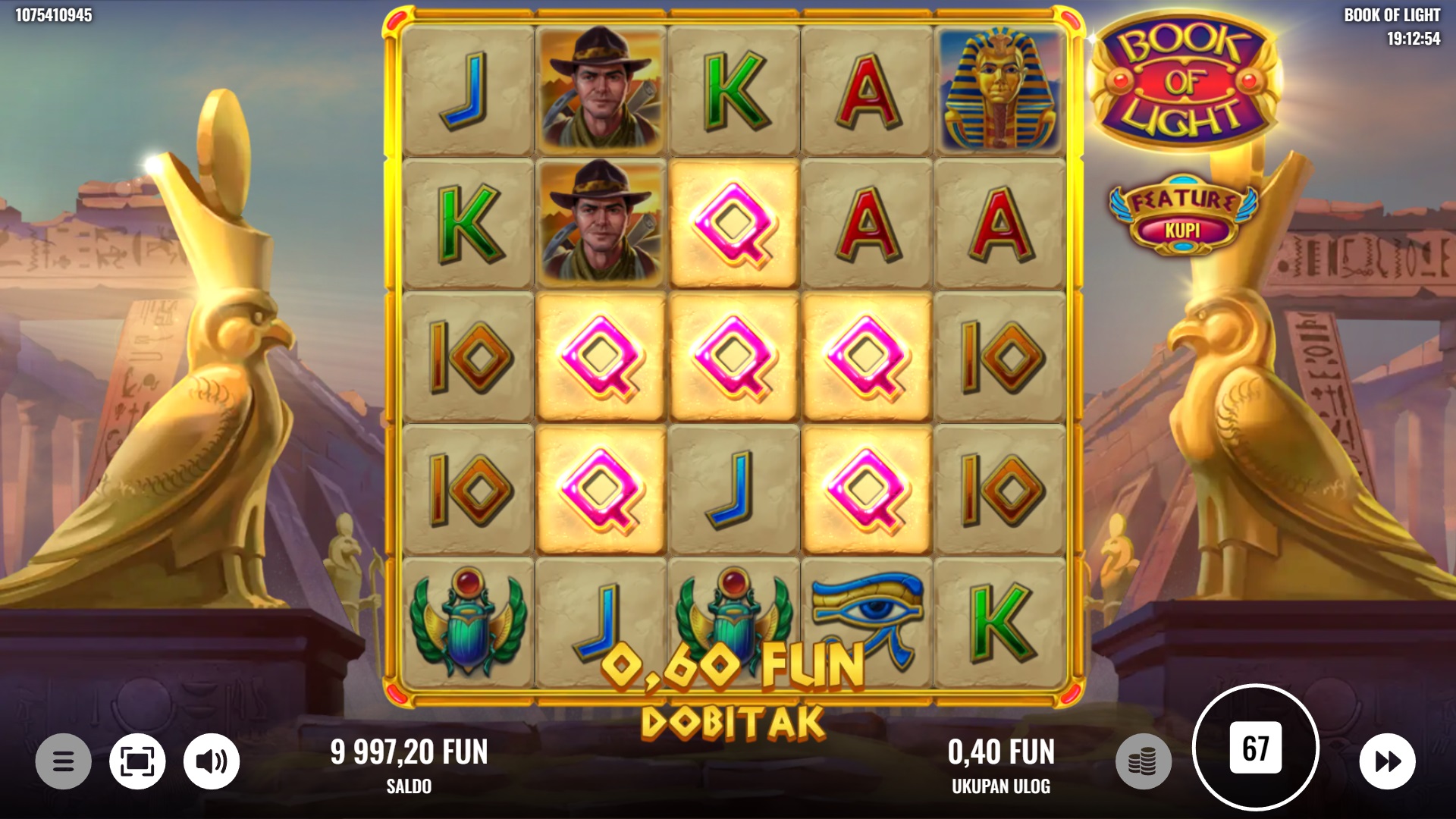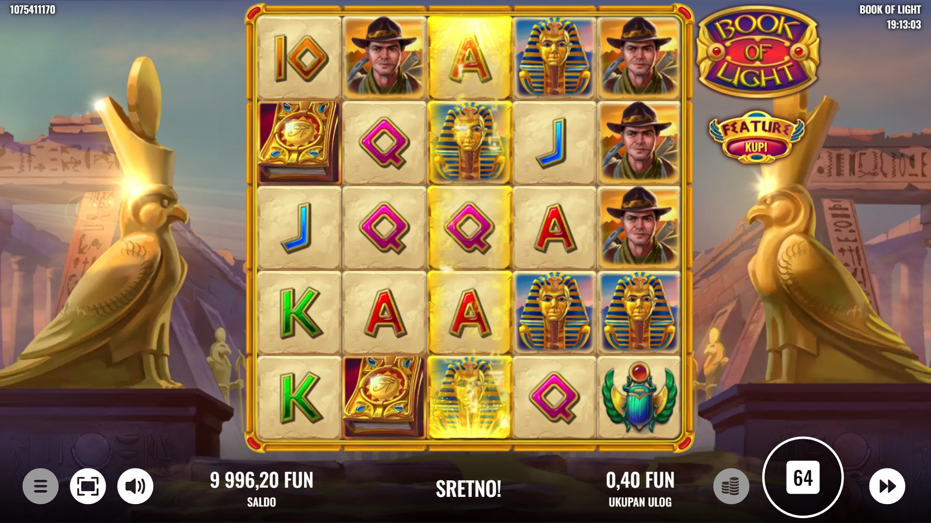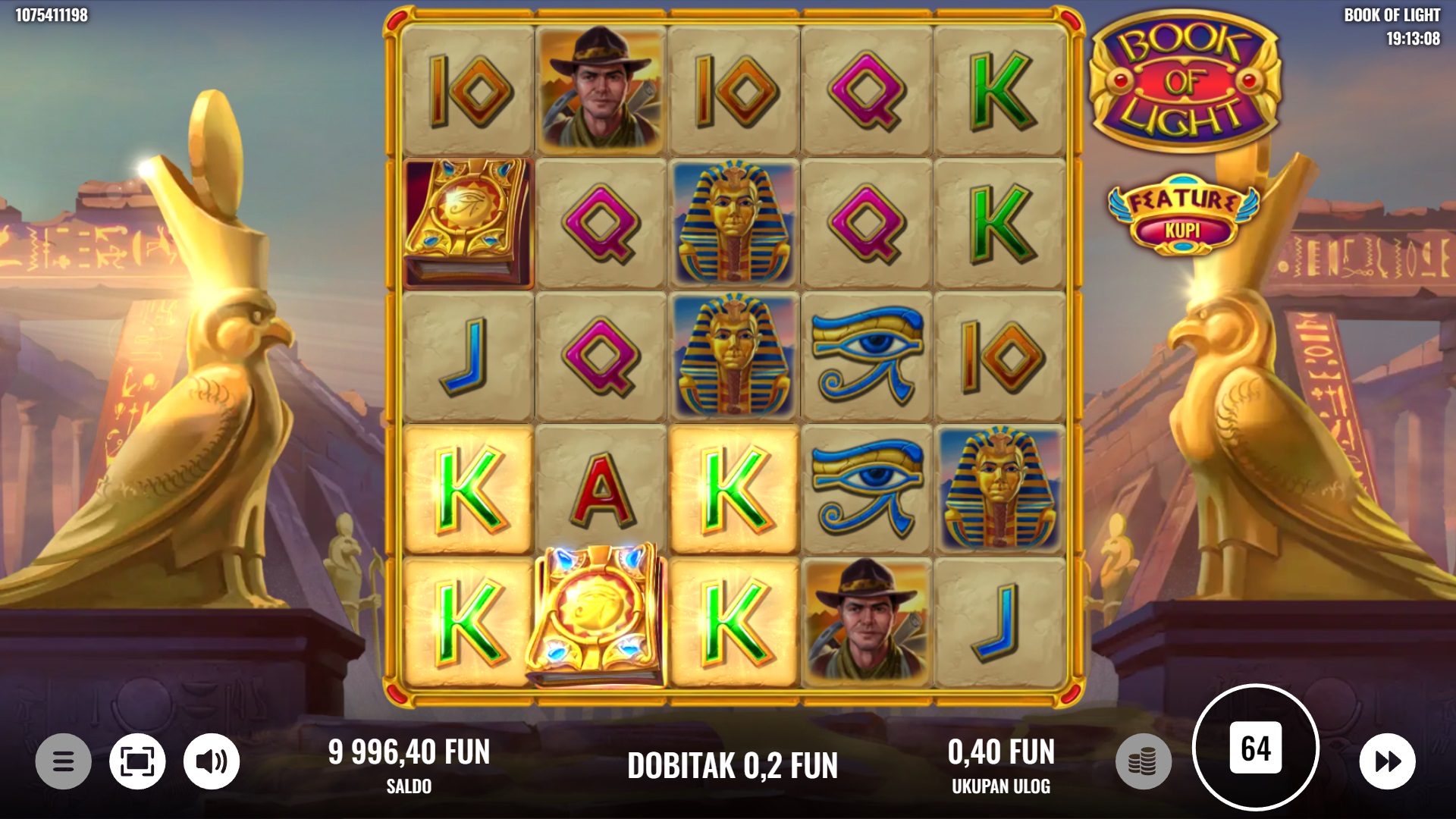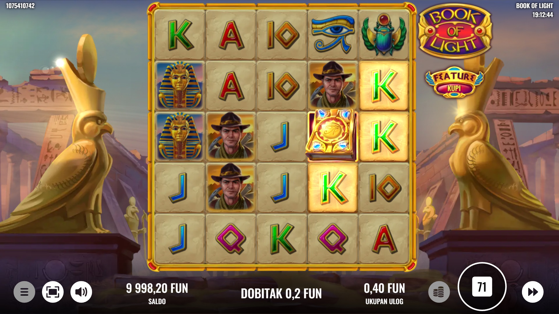 Book of Light ima RTP od 95%, što znači da nudi solidne šanse za dobitak. Volatilnost igre je srednja, što znači da možeš očekivati redovne, manje dobitke, ali i prilike za veće nagrade. Ova ravnoteža čini Book of Light odličnim izborom za igrače koji traže uzbuđenje, ali i dobre šanse za osvajanje nagrada.