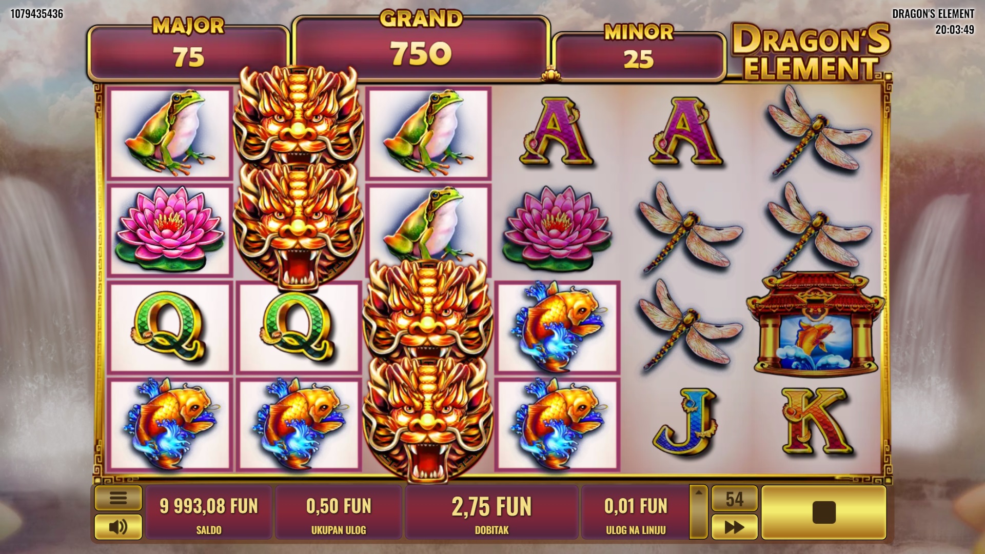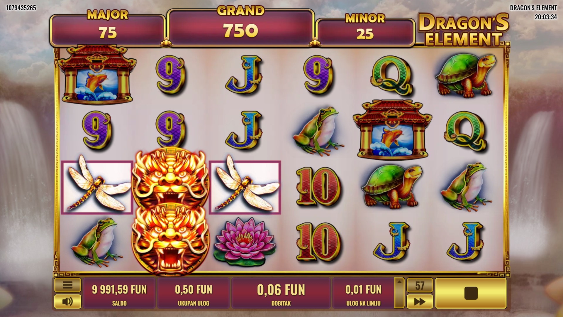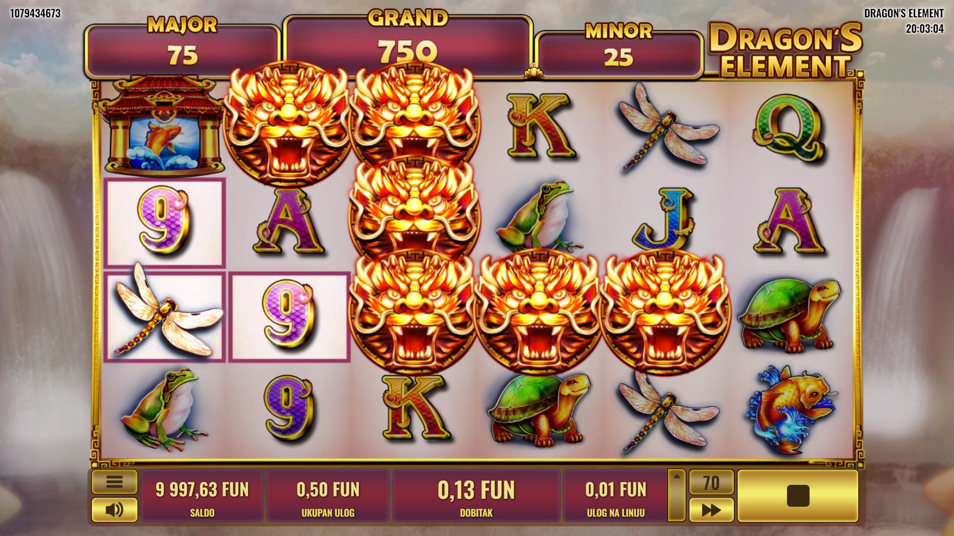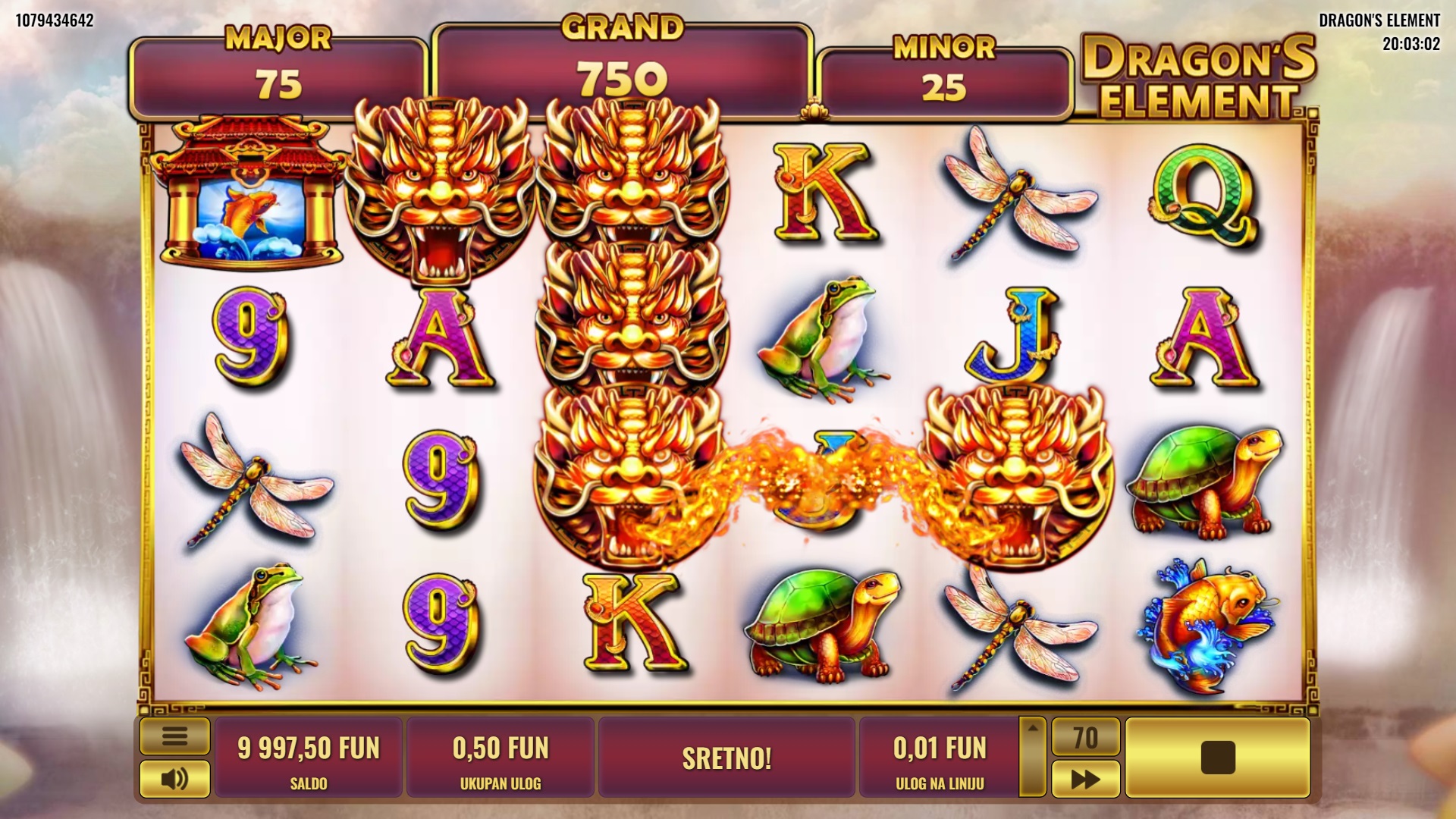 Dragon's Element ima RTP od 95,03%, što znači da igra vraća solidan postotak uloga tijekom vremena. Volatilnost ove igre je srednja, što znači da možeš očekivati ravnotežu između manjih i povremenih većih dobitaka. To je idealno za igrače koji vole uzbuđenje s relativno čestim, ali ne nužno velikim isplatama. U ovoj igri možeš uživati u balansiranom iskustvu s puno šansi za pobjedu, uz dodatne bonuse i jackpote.