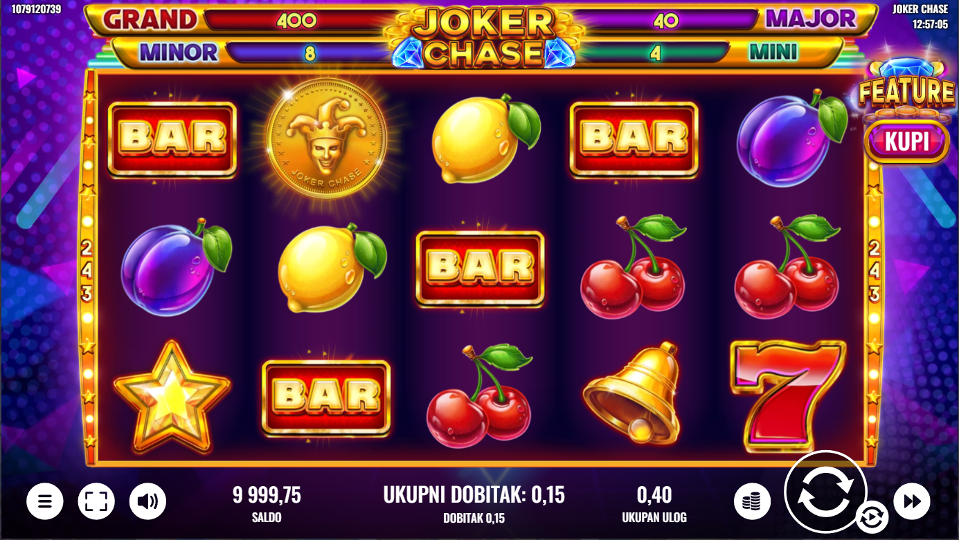 Joker Chase ima RTP oko 95% i visoku volatilnost, što znači: ne nagrađuje stalno, ali kad nagradi, isplati kao pravi jackpot trik na kraju predstave. Ovo je igra za one koji vole adrenalinski all in osjećaj i uživaju u velikim preokretima.
