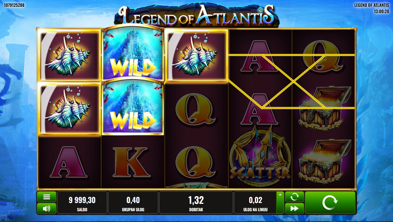 Legend of Atlantis i Platipusvode te duboko pod površinu oceana, u mitski izgubljeni grad gdje se blago skriva iza svjetlucavih simbola i drevnih mehanizama. Svaki spin izgleda kao zaron u misteriozni svijet: mjehurići, svetinje, dragulji i zlatni artefakti eksplodiraju na valjcima. U ovoj igri nikad ne znaš što će isplivati na površinu… jackpot ili legenda!