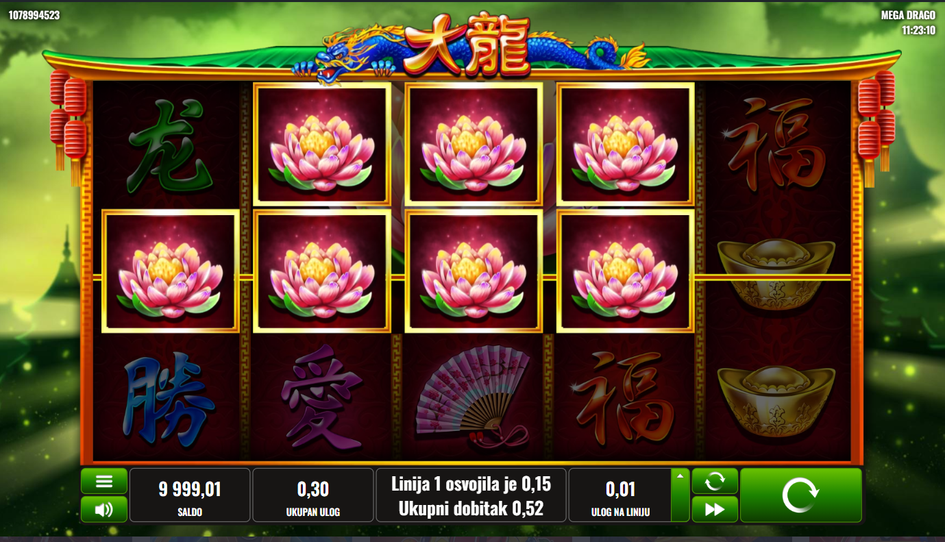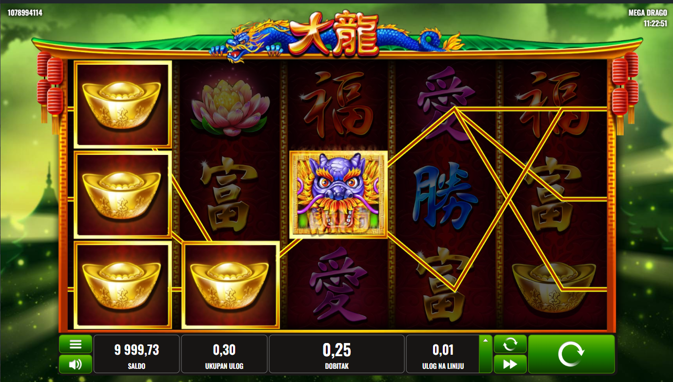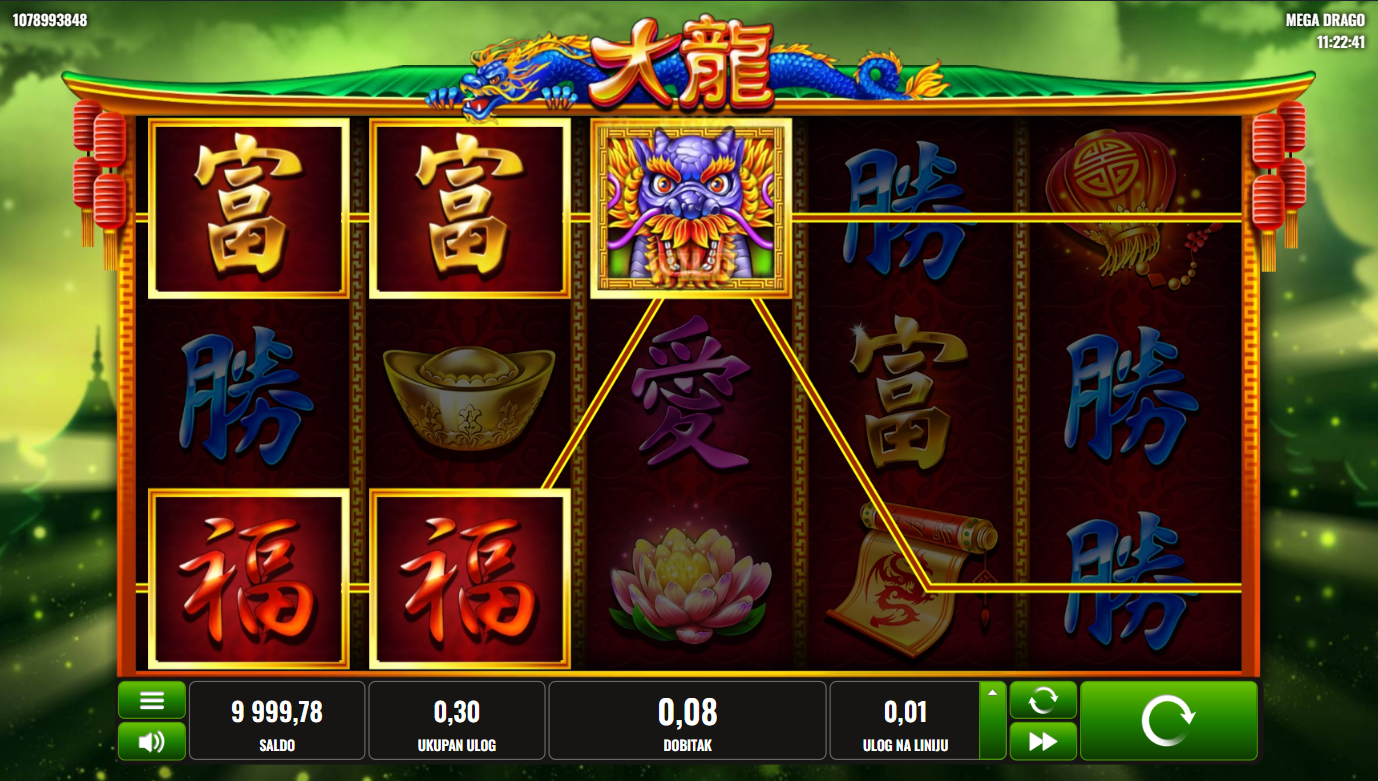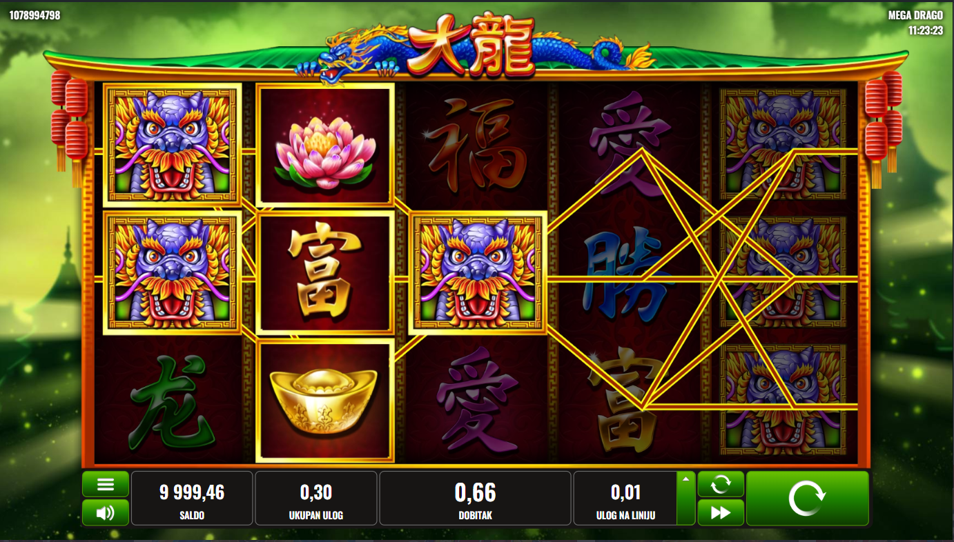Mega Drago i Platipusvode te u mistični orijentalni svijet zmajeva i drevnih simbola sreće. Svaka vrtnja donosi šansu da se pojavi legendarni Mega Drago simbol koji rasplamsa valjke i otvori vrata većim dobicima. Vizuali su bogati, atmosfera je mistična, a osjećaj da loviš zmajsko blago čini svaki spin posebno napetim. Spremi se za vatrenu avanturu!