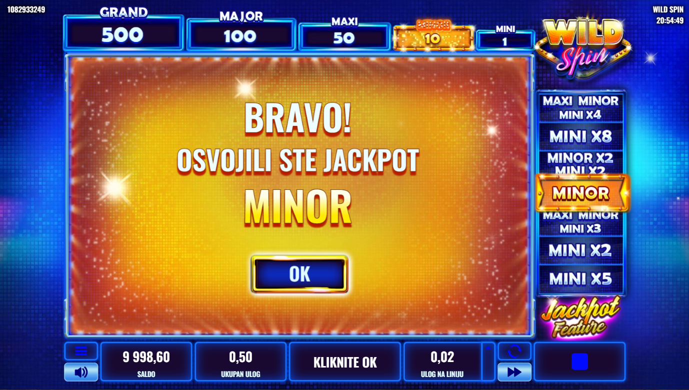 4. Koji su minimalni i maksimalni ulozi u igri Wild Spin?