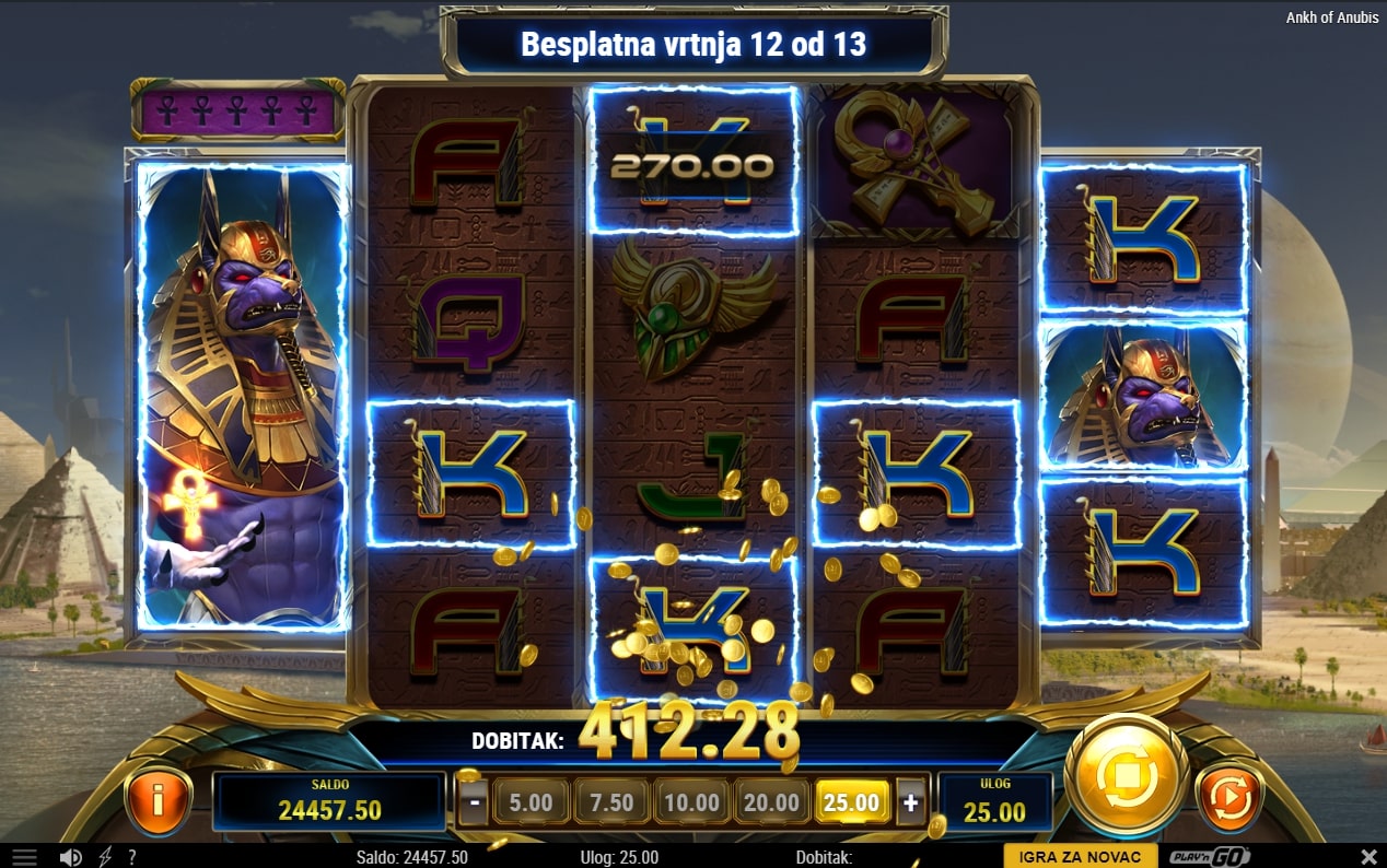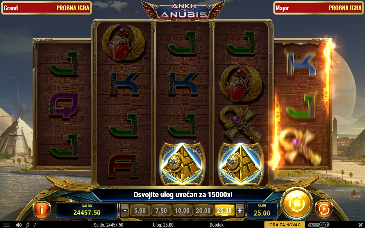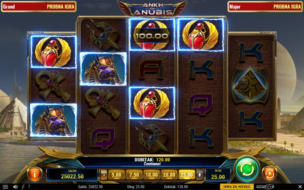 Ankh of Anubis slot je igra povijesne tematike koja vodi igrača u svijet tajni rezerviran samo za one hrabre naravi. U tom svijetu najviše isplaćuju simboli povezani s egipatskom mitologijom, dok igra uz to sadrži posebne simbole Anubisa i piramide koji mogu zamijeniti druge simbole, odnosno odvesti igrača u paralelni svijet besplatnih vrtnji. Zaigraj Ankh of Anubis te osvoji misteriozne nagrade!