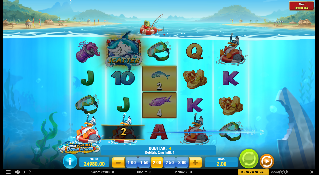4. Koji su minimalni i maksimalni ulozi u igri Boat Bonanza Down Under?