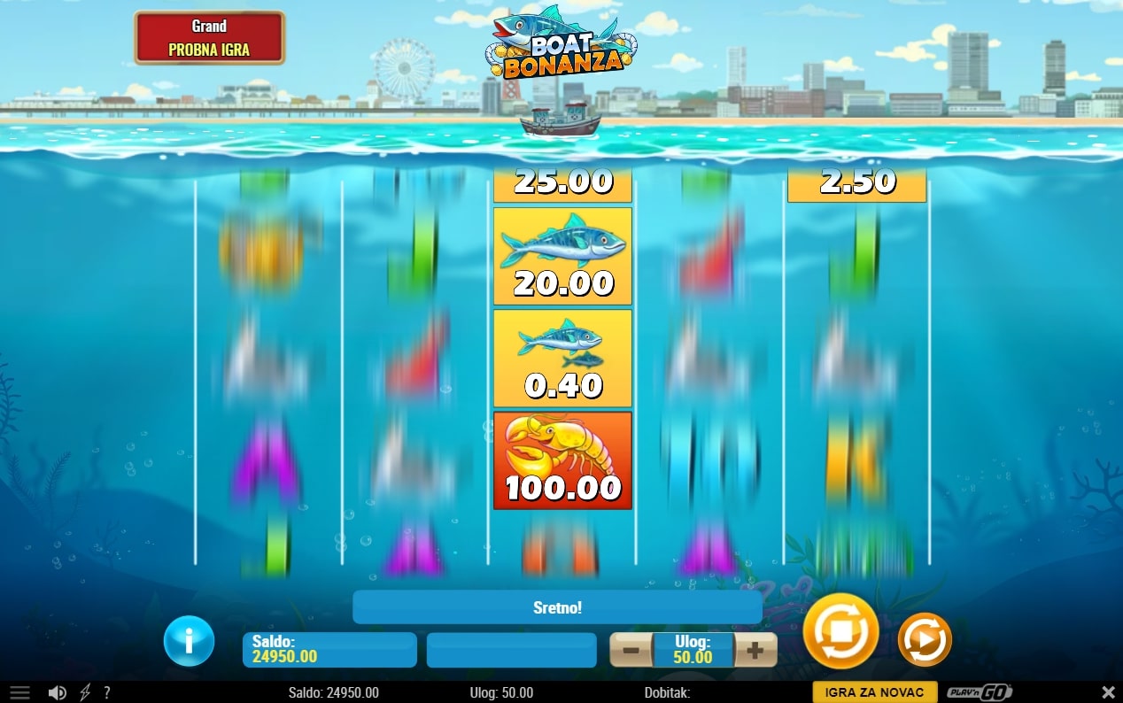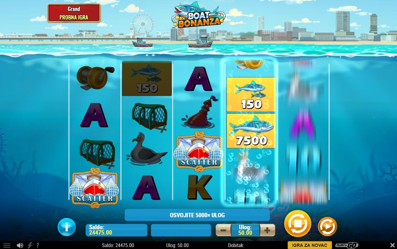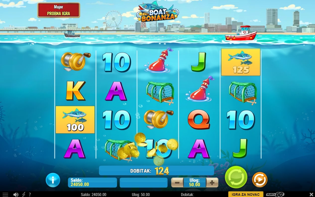 Boat Bonanza slot je igra pomorske tematike koja vodi igrača u lov na vrhunske nagrade. Simboli su inspirirani pomorskim aktivnostima, a najviše isplaćuju simboli udice, galeba i štapa. Besplatne vrtnje aktiviraju se nizanjem simbola mreže te one mogu dovesti dobitke do vrhunskih razina. Također, tijekom igre brodovi kruže iznad koluta te mogu nasumično isplatiti vrijednost posebnih simbola s vrijednostima. Zaigraj Boat Bonanza i osvoji osvježavajuće nagrade!