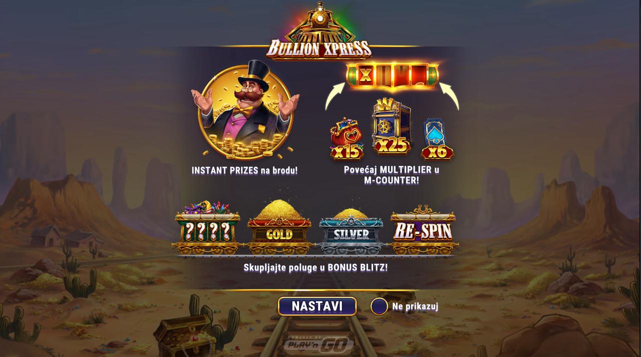Bullion Xpress nudi atraktivan RTP koji osigurava stabilno i dinamično iskustvo igranja. Volatilnost je srednja, što znači da igra kombinira redovite manje dobitke s mogućnošću povremenih većih isplata, idealno za igrače koji vole dinamiku i ravnotežu.