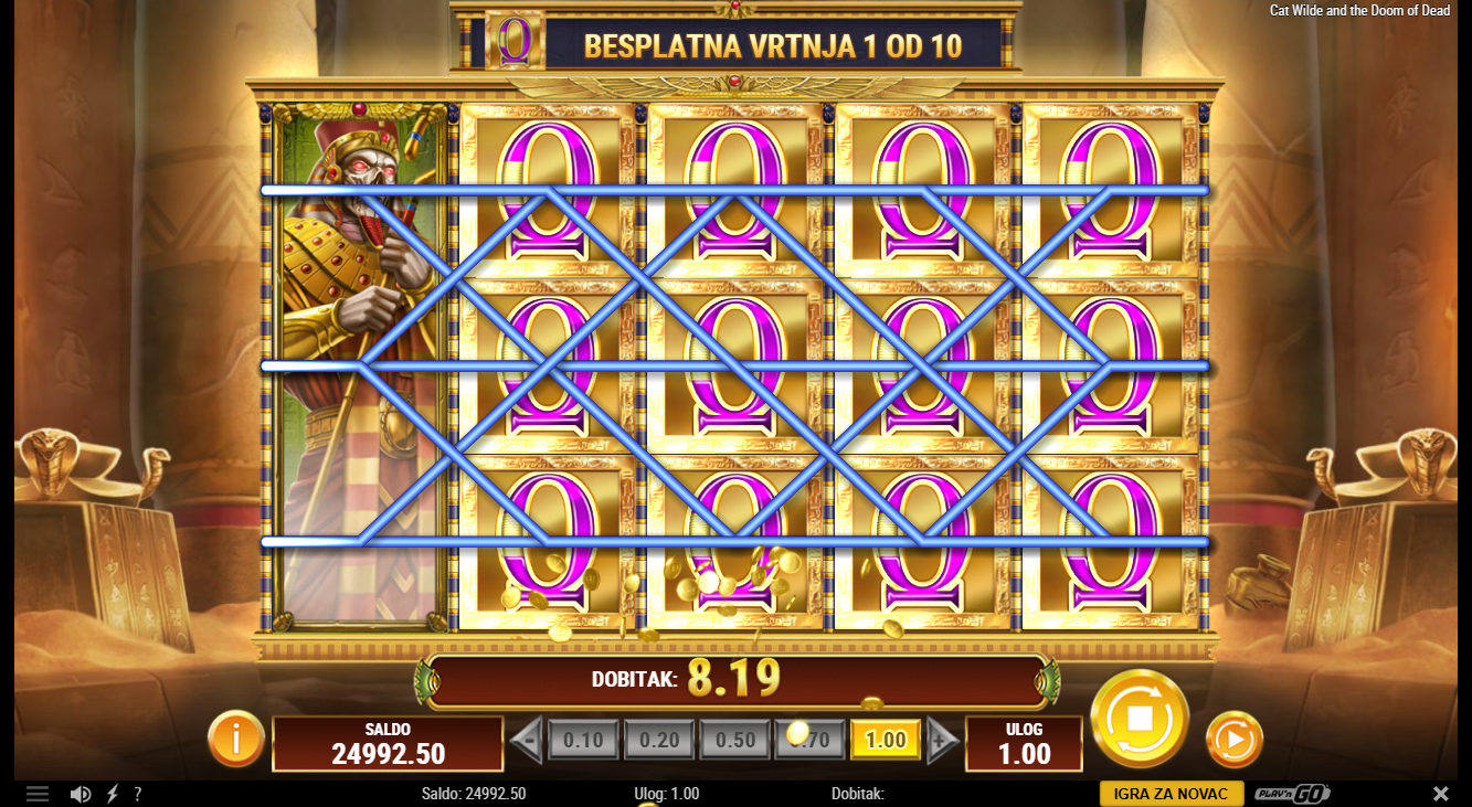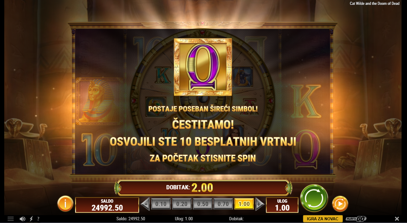 Iz radionice PlayNGo dolazi Cat Wilde koja ne traži pomoć, ona sama ulazi u najdublje egipatske grobnice i suočava se s prokletstvima starim tisućama godina. U ovoj avanturi ne osvajaju se samo dobici već i znanje, simboli drevnih tajni i šansa da se ispuni sudbina. Svaki spin vodi te dublje u misterij gdje bogatstvo i opasnost idu ruku pod ruku. Mistični simboli, svjetlucavi zlatni sarkofazi i sablasna glazba stvaraju pravu atmosferu. Cat možda traži blago, ali ti možeš pronaći nešto još vrjednije.