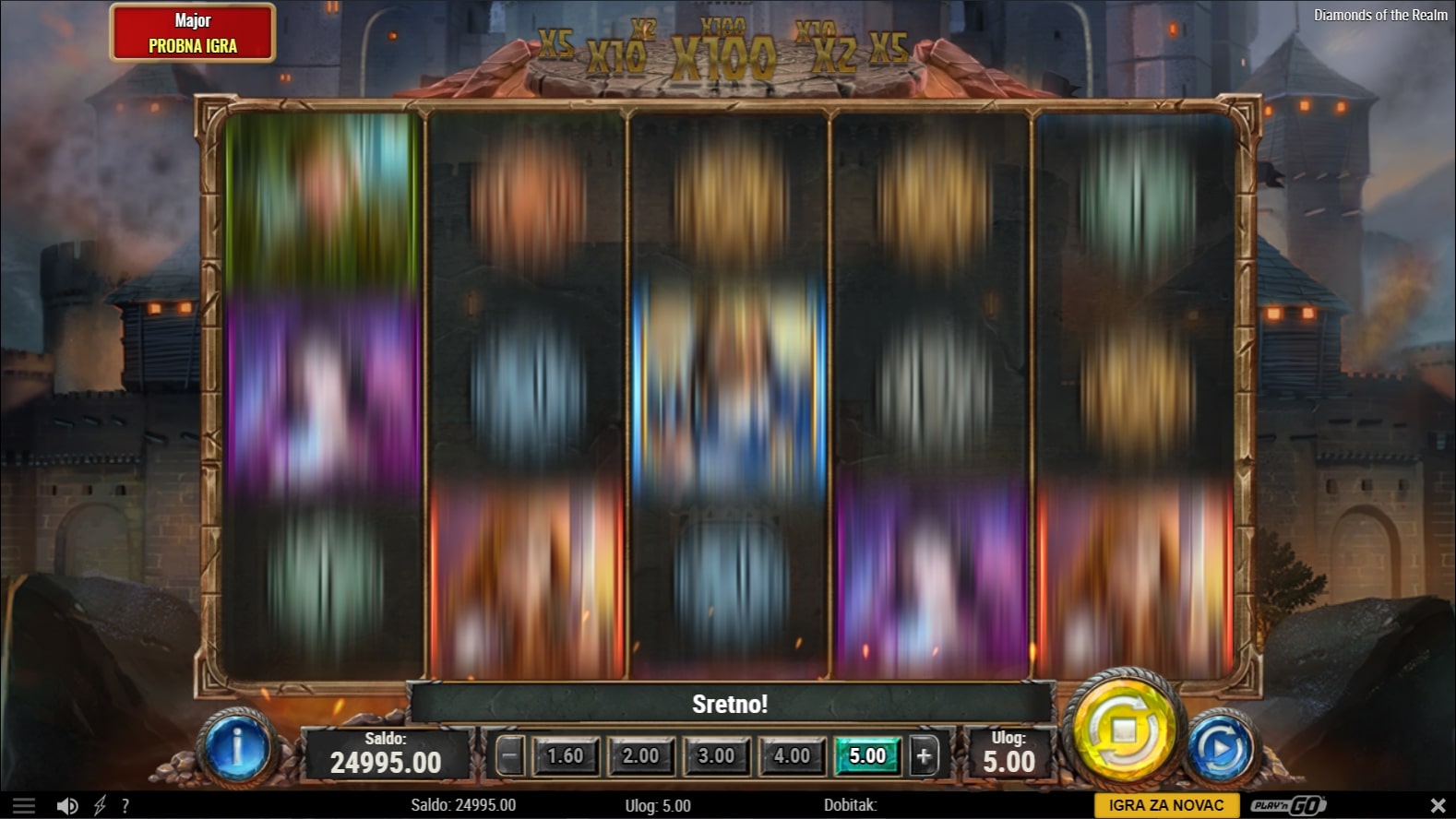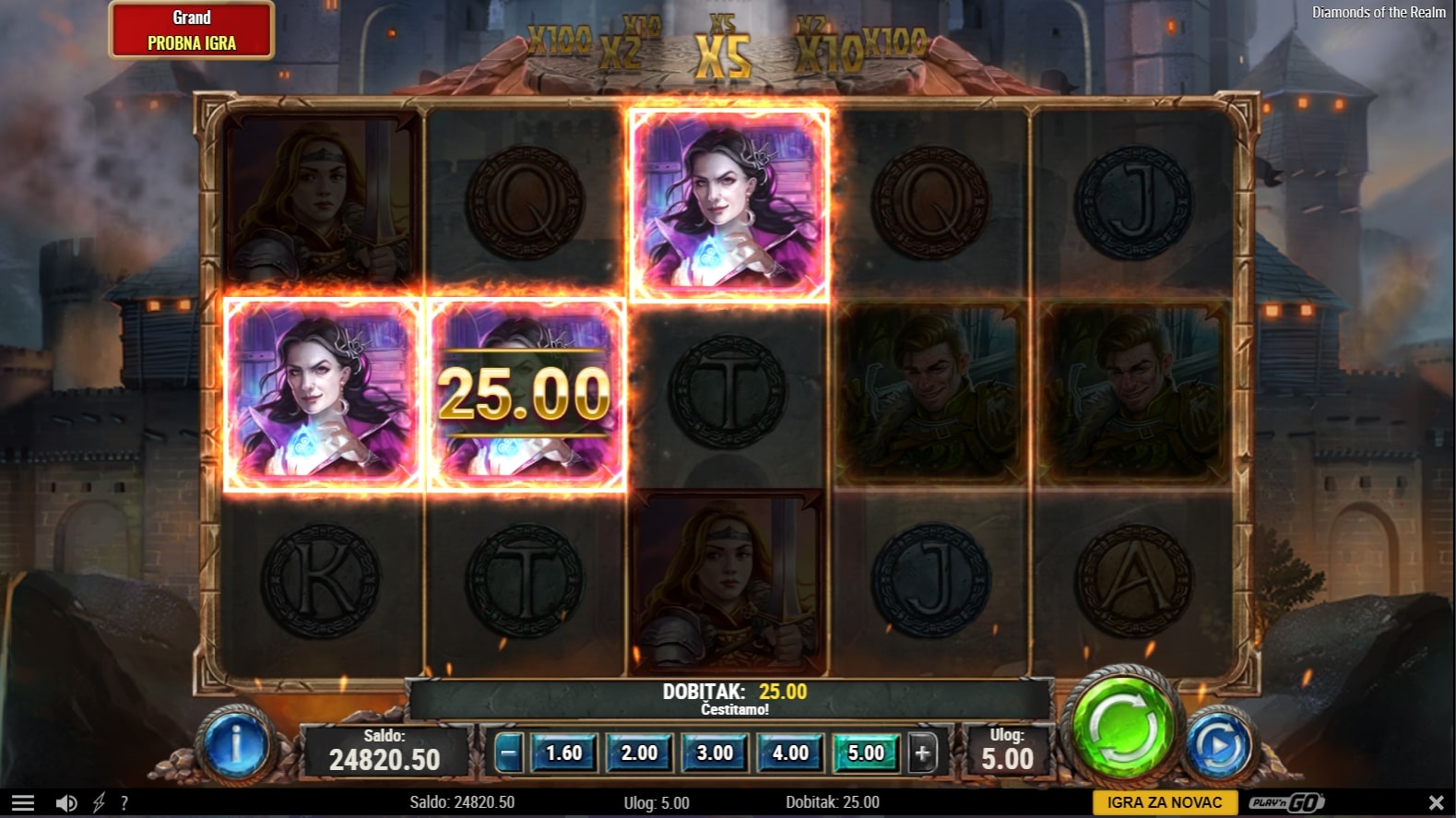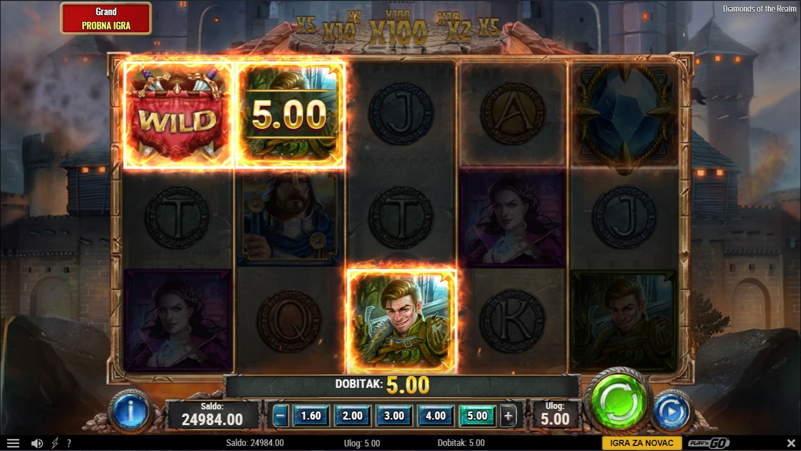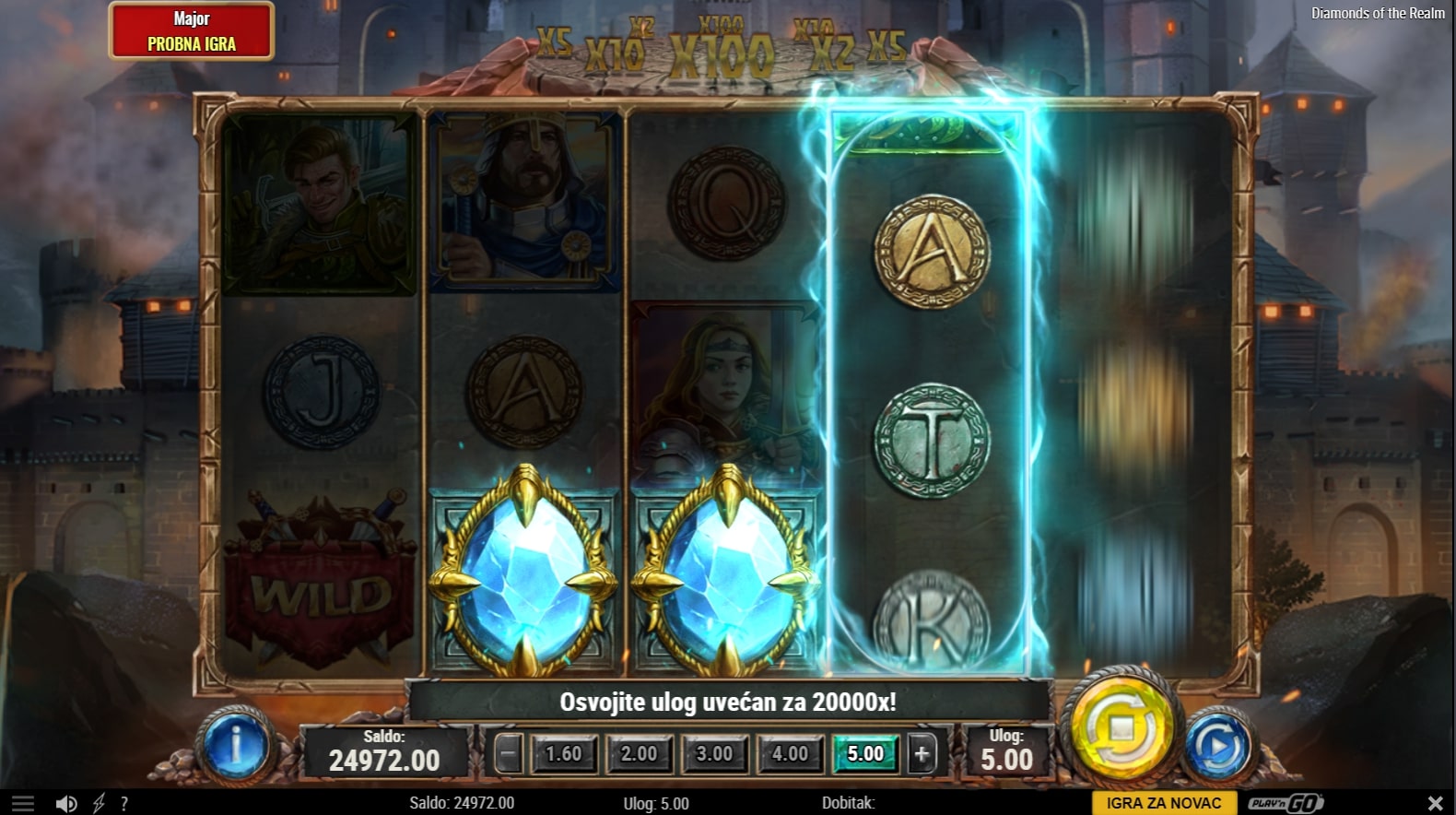 Diamonds of the Realm tematska je slot igra što vodi igrača u mitološki svijet kralja Artura u bitku za najbolje dobitke. Najviše isplaćuju simboli viteza, kraljeva i čarobnica, dok simbol Wild pomaže u stvaranju dobitaka zamjenom drugih simbola. Također, igrač može osvojiti besplatne vrtnje pojavom simbola dijamanta. Zaigraj Diamonds of the Realm te osvoji legendarne nagrade!
