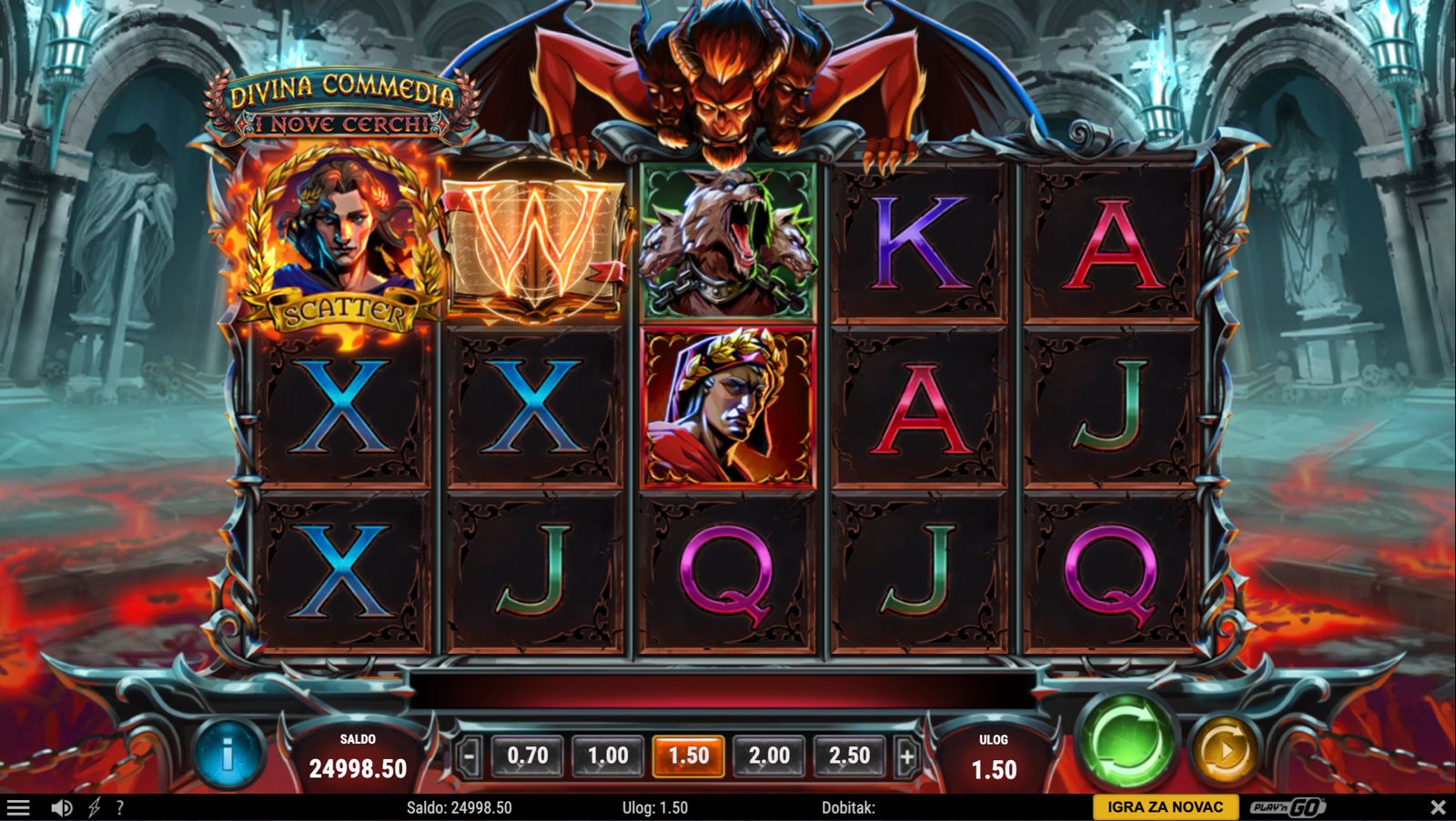Divina Commedia I Nove Cerchi nudi atraktivan RTP koji osigurava stabilno i dinamično iskustvo igranja. Volatilnost je srednja do visoka, što znači da igra kombinira češće manje dobitke s mogućnošću povremenih većih isplata — idealno za igrače koji traže intenzivno, ali uravnoteženo iskustvo.