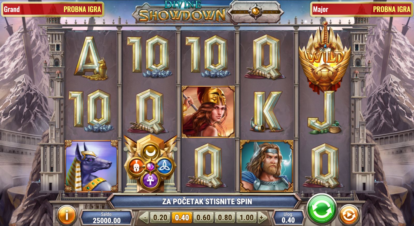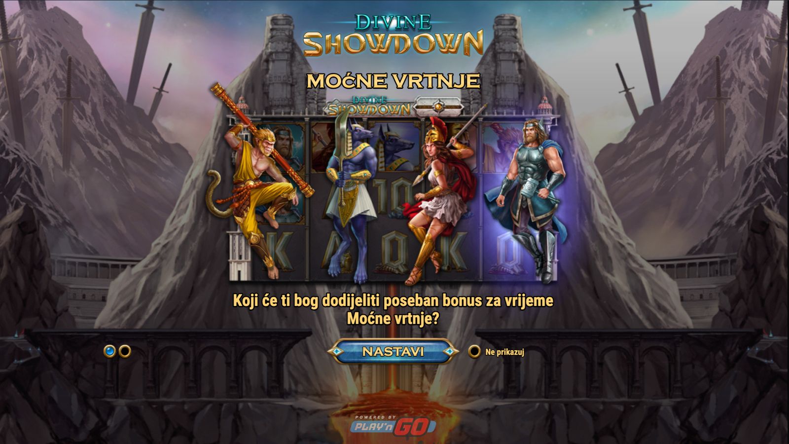 Divine Showdown je video slot razvijen od strane Play'n GO, smješten u svijet mitoloških božanstava iz različitih kultura. Igra se odvija na 5 kolona i 3 reda, s 20 fiksnih isplatnih linija. Osnovni cilj je složiti dobitne kombinacije od lijeva prema desnu, koristeći simbole koji se pojavljuju na aktivnim linijama. Igra uključuje značajke poput Power Spin funkcije, besplatnih vrtnji i multiplikatora.