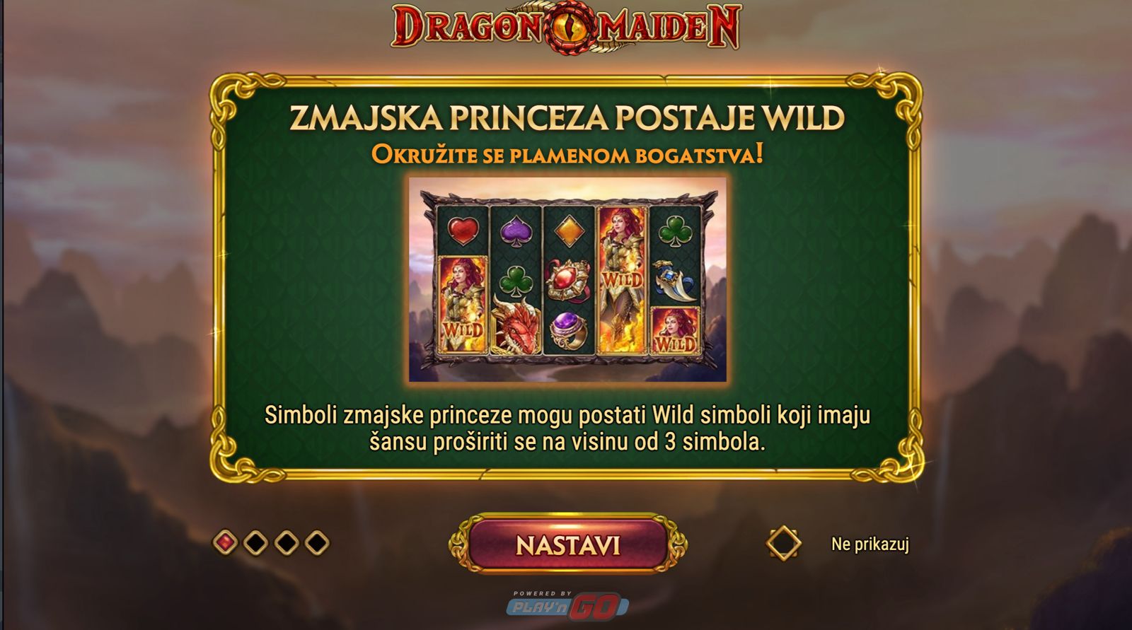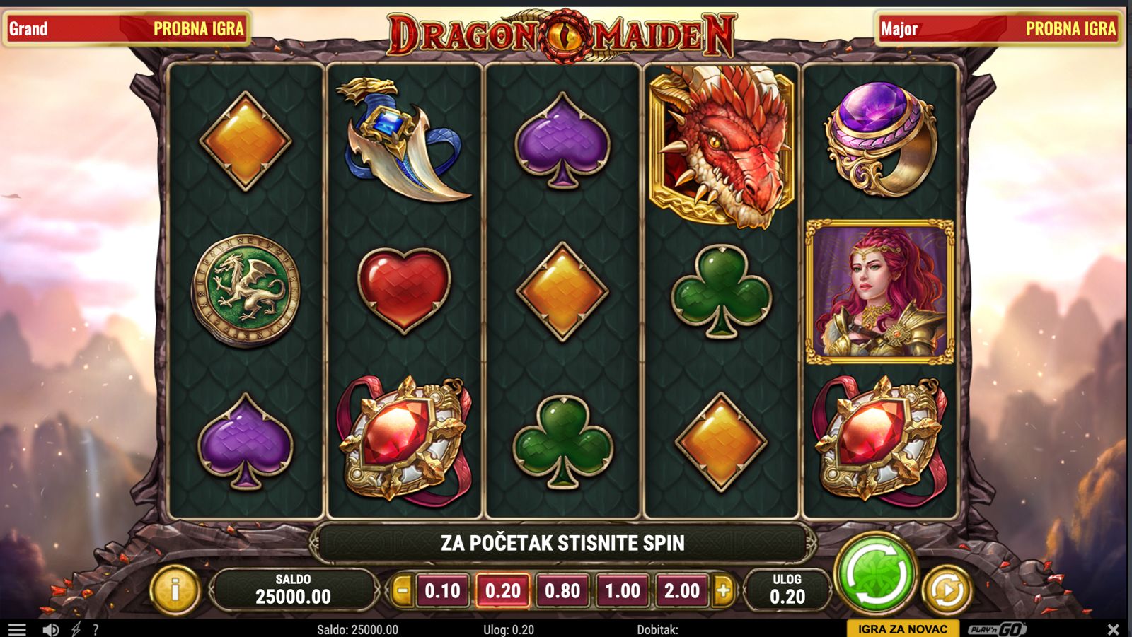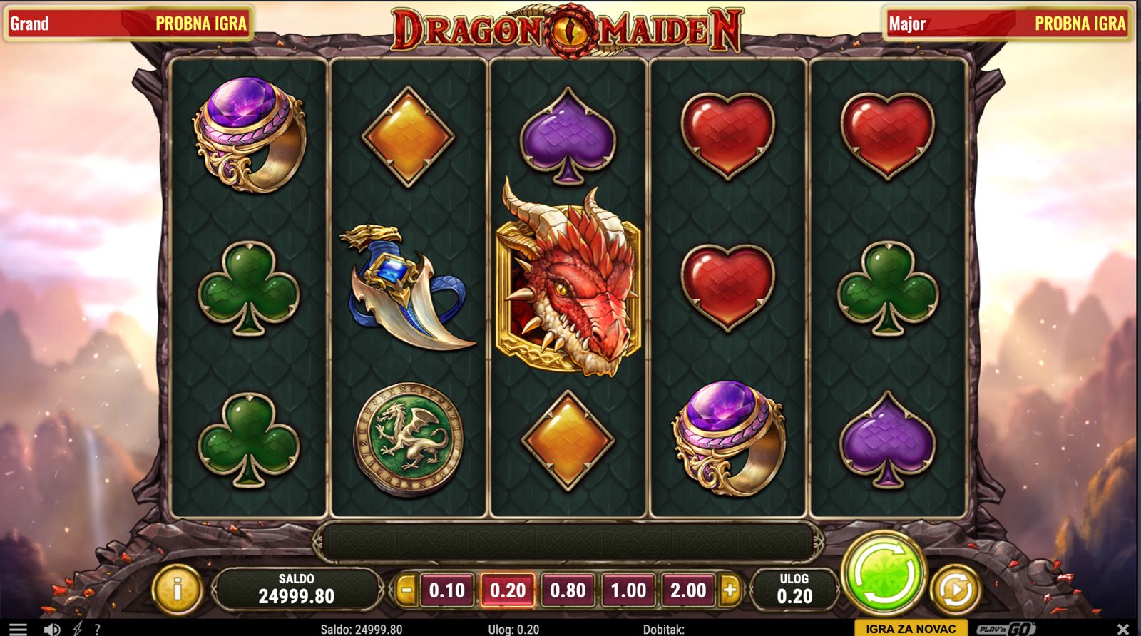 Dragon Maiden je video slot smješten u fantastični svijet drakona i hrabrih junakinja, razvijen od strane Play’n GO. Igra se odvija na 5 koluta i 3 reda s početnih 243 isplatne linije, koje se mogu proširiti na 7.776 tijekom besplatnih vrtnji. Tema igre uključuje simbole poput zmajevih kovanica, daggera, prstenova i amuleta, stvarajući atmosferu avanture i magije.