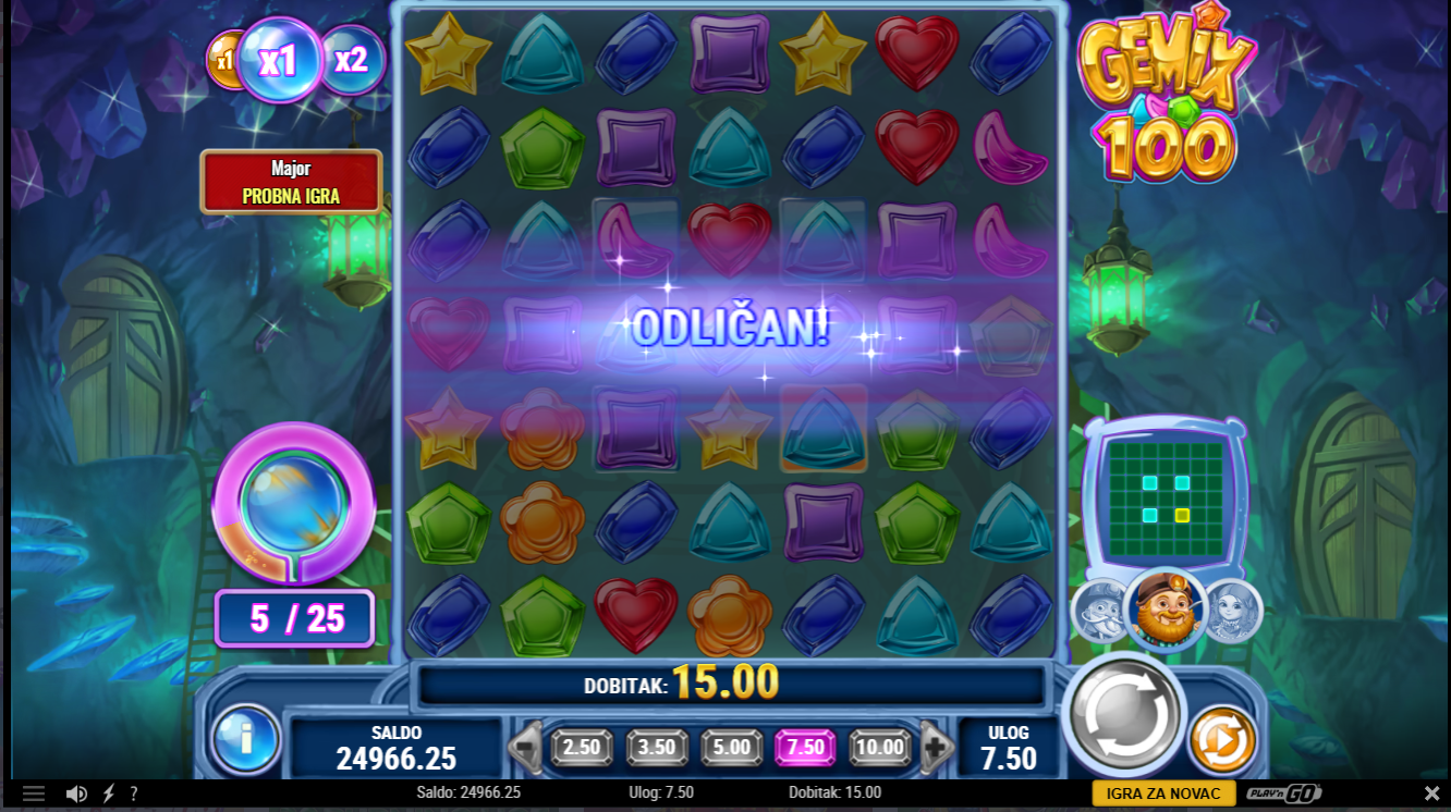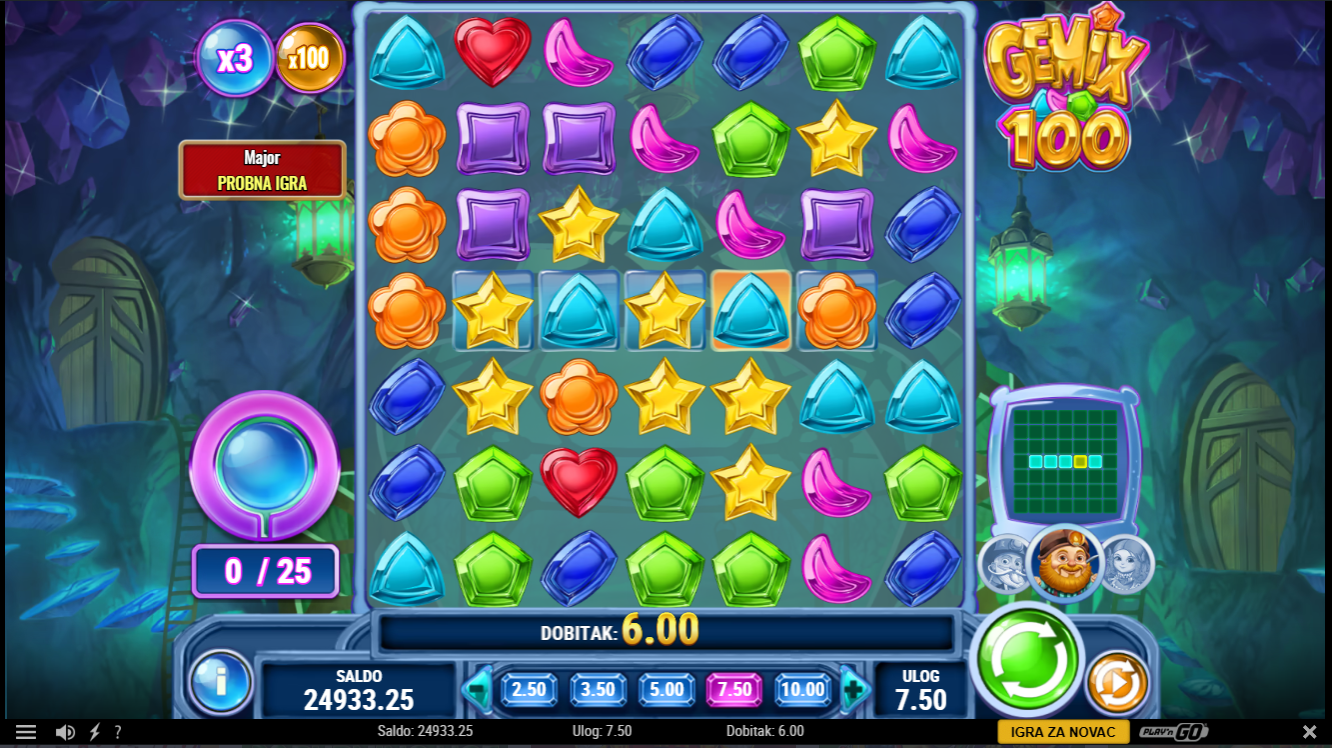 Gemix 100 ima RTP 94,2% i visoku volatilnost.