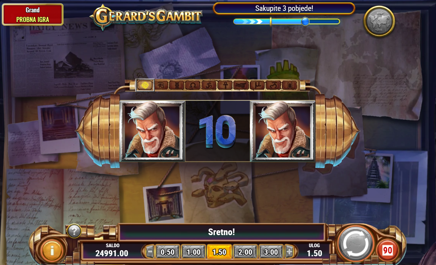 Gameplay u Gerard's Gambit je jednostavan i zabavan. Igra počinje s tri role i jednom dobitnom linijom, ali se može proširiti do pet rola i deset dobitnih linija. S raznim bonus značajkama poput re-spinova i free spinova, igra nudi brojne mogućnosti za osvajanje. Simboli poput wild-a pomažu u formiranju dobitnih kombinacija, dok bonus simboli donose dodatne nagrade. Isprobaj različite načine igre i iskoristi free spinove za dodatne šanse za dobitak!