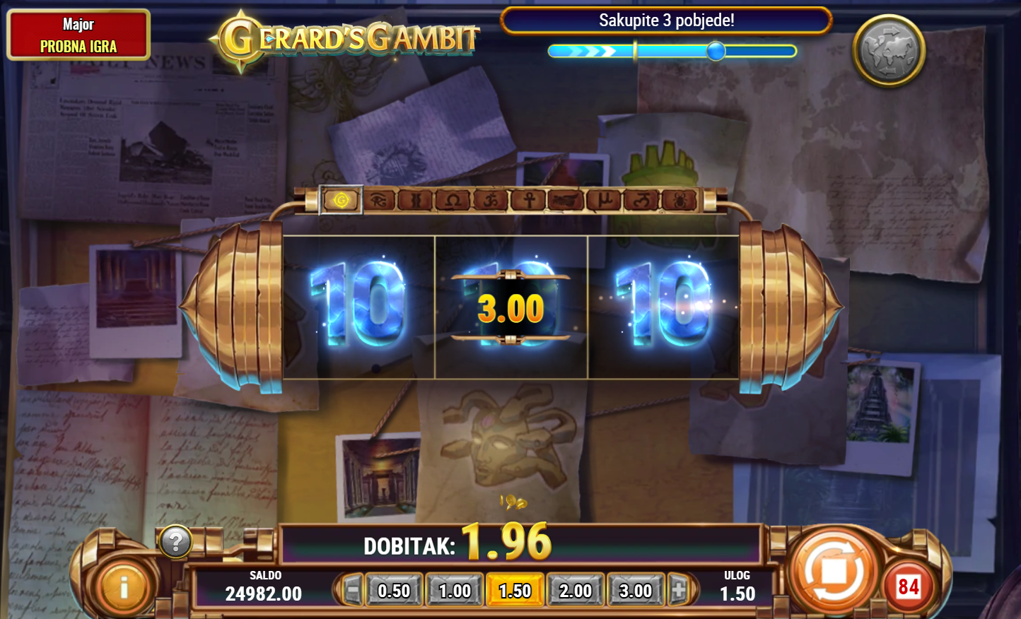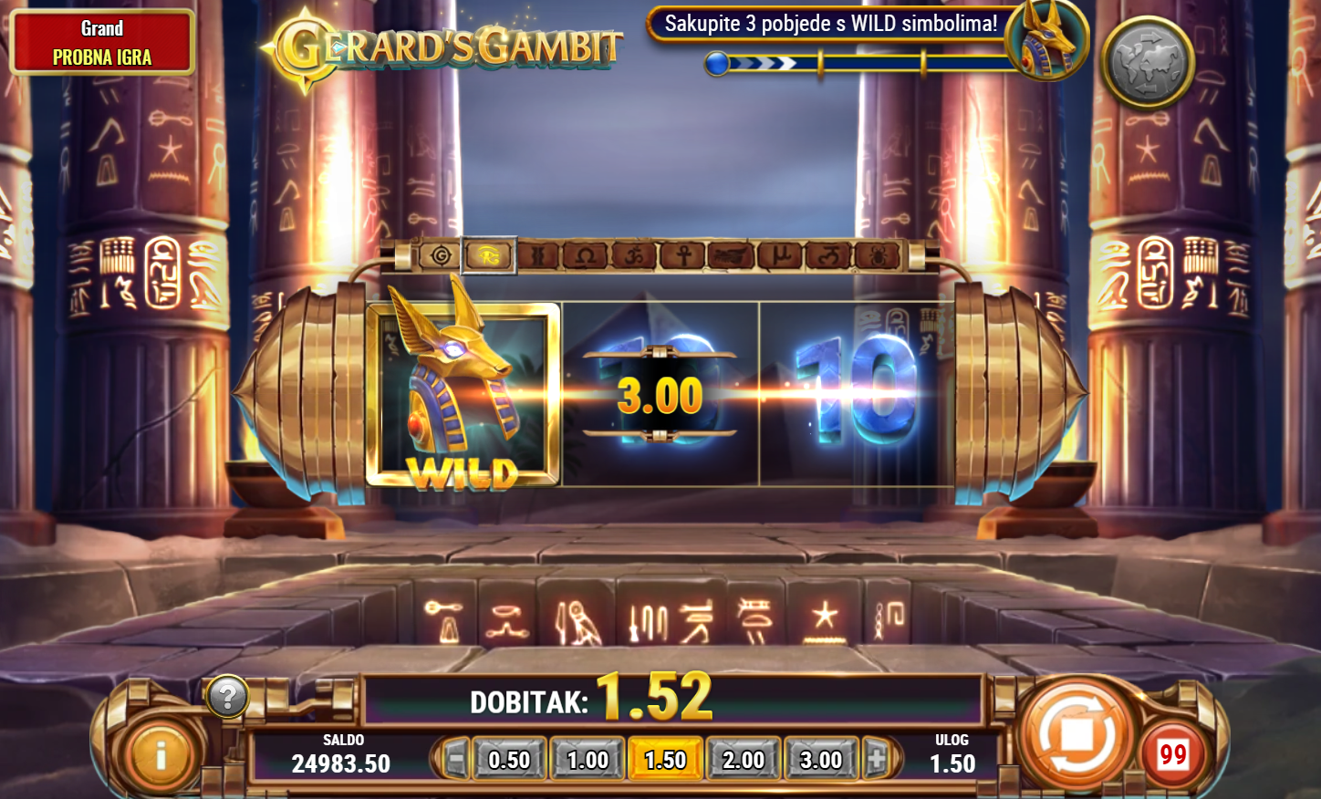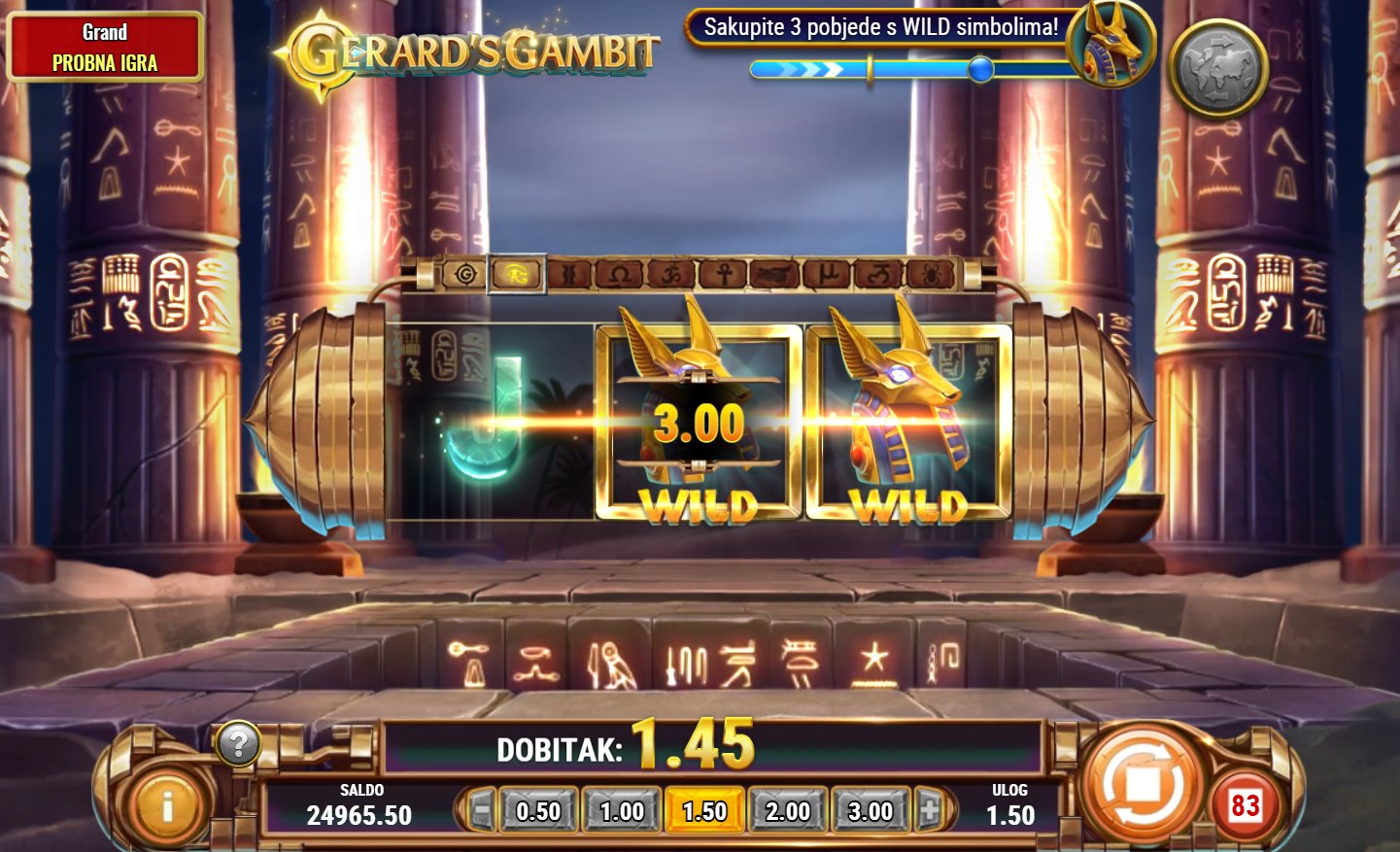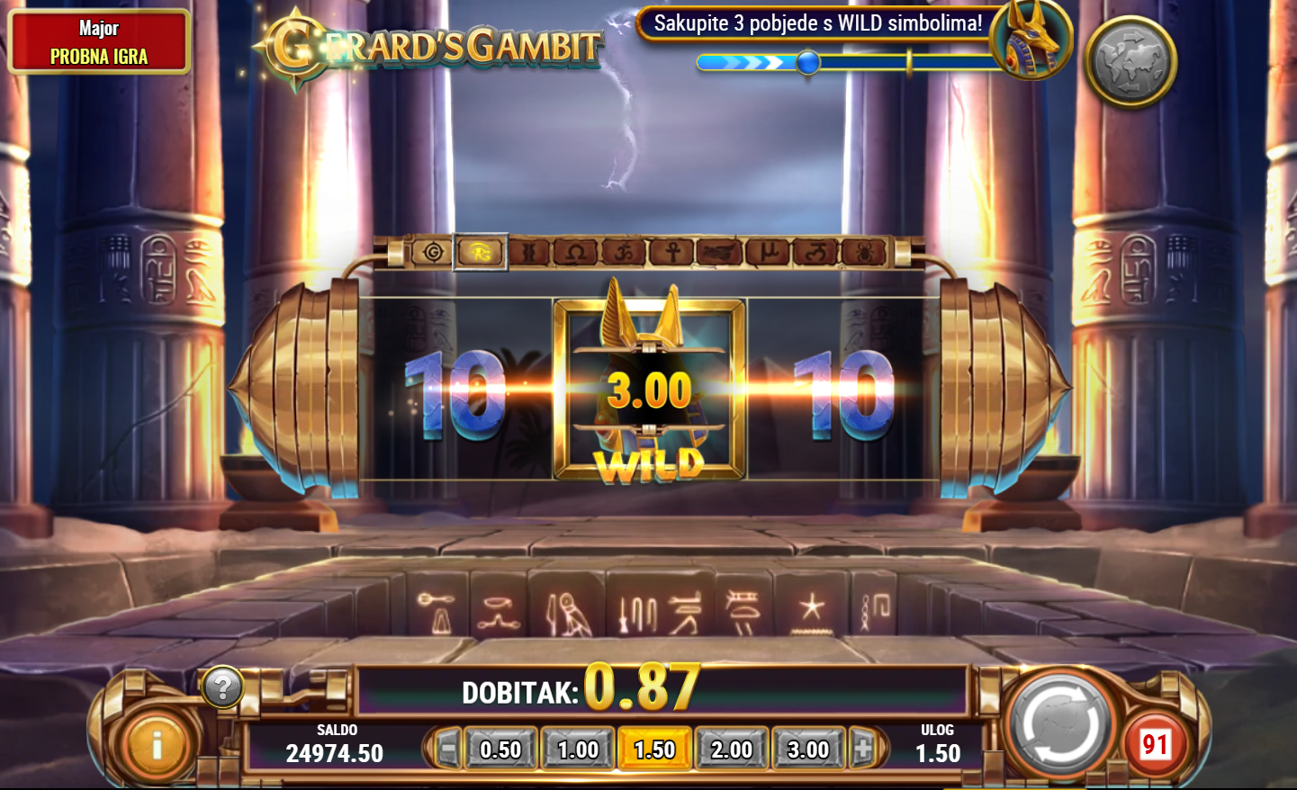 U igri Gerard's Gambit, uživat ćeš u raznolikim bonusima i šarenim simbolima kroz deset različitih lokacija. Ova igra nudi uzbudljive mogućnosti za dobitak uz fantastične free spinove, re-spinove i velike jackpote. Svaka lokacija donosi jedinstvene izazove i nagrade, od divljih simbola u Egiptu do bonus značajki u Indiji. Uz svaki korak, Gerard's Gambit donosi novu razinu zabave i priliku za osvajanje velikih nagrada. Pripremi se za putovanje kroz raznolike svjetove i iskoristi sve mogućnosti koje Gerard's Gambit pruža!